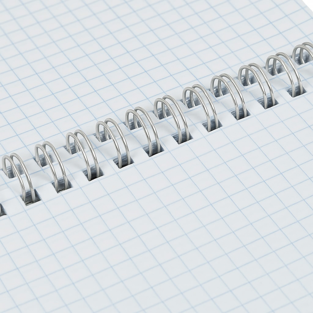 Состоит из 60 листов размером 148*200 мм офсетной бумаги белого цвета плотностью 60 г/м2. Линовка – клетка. Обложка – мелованный картон. Гребень позволяет легко вынимать листы при необходимости.
