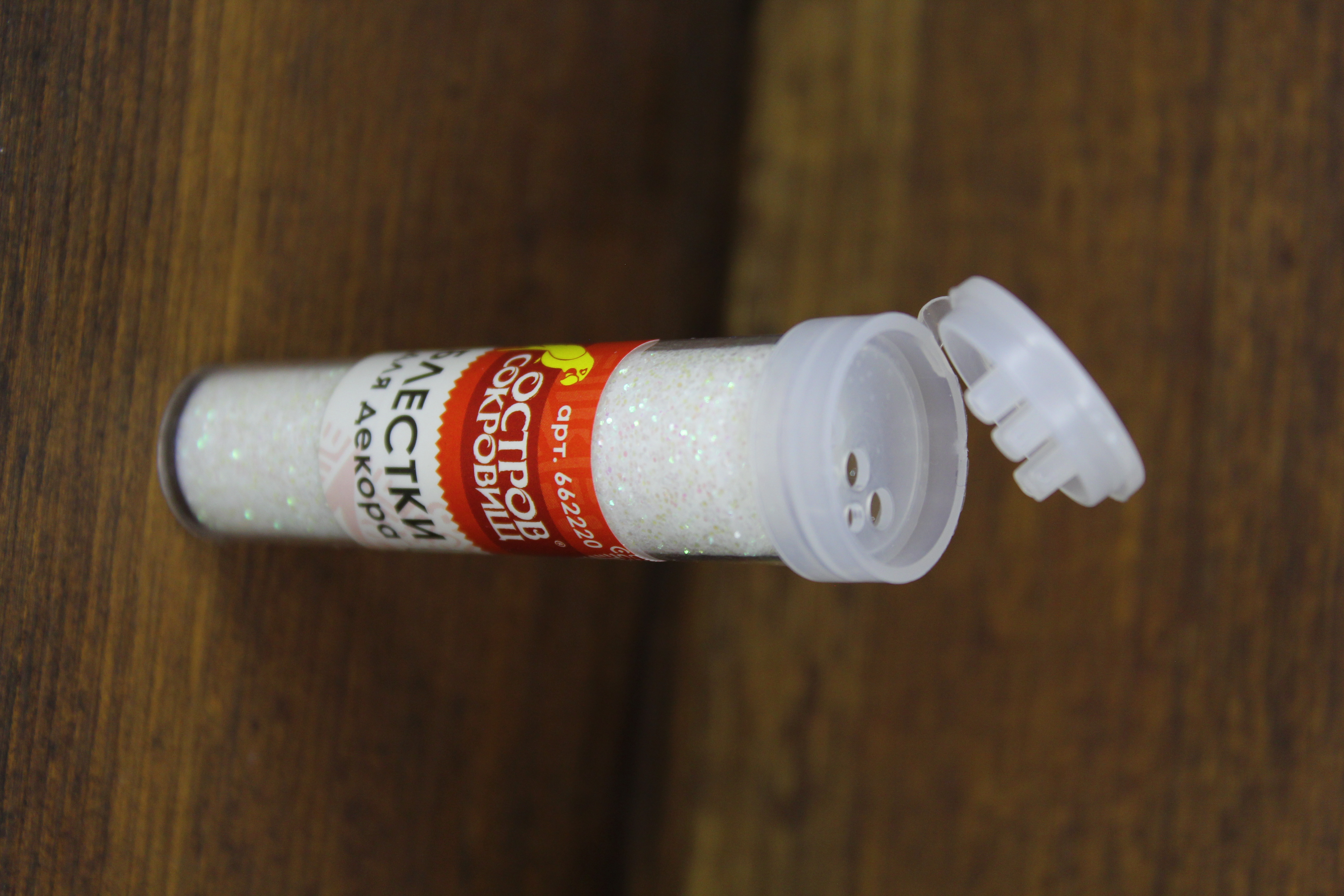 Блестки для декора, 1 туба, 7 грамм, белый металлик ОСТРОВ СОКРОВИЩ