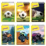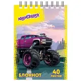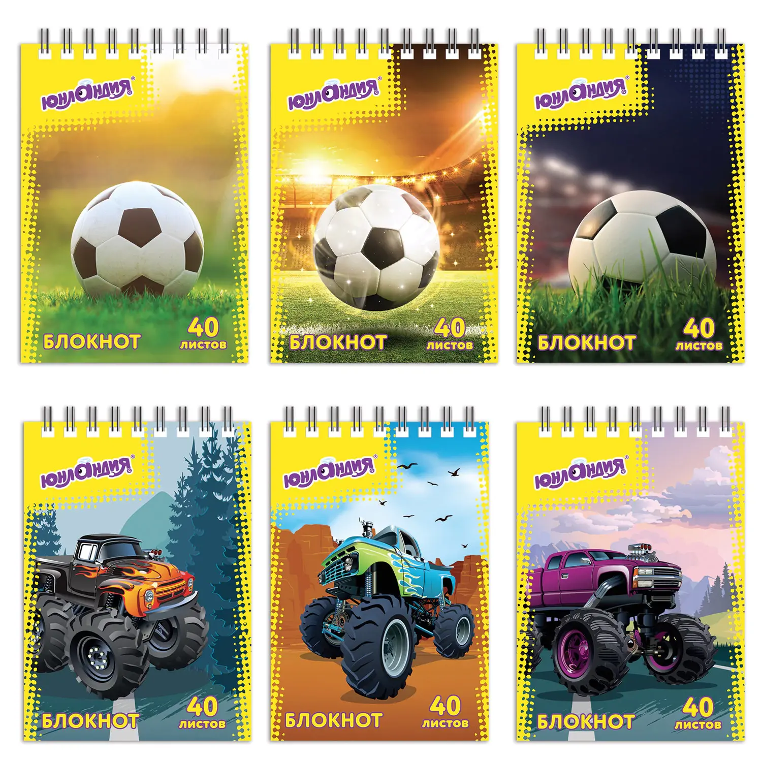 Поштучно! Внимание: при заказе Вы получите дизайн доступный на складе в данный момент! Блокнот ЮНЛАНДИЯ "Монстр-трак" / "Футбол" – это простой и удобный способ записать, структурировать и запомнить нужную информацию. В нем также можно делать рисунки и эскизы, сохранять фотографии, билеты и другие мелочи. Блокнот формата А7 на евроспирали содержит 40 листов с линовкой в клетку. Имеет верхнее расположение переплета. Обложка выполнена из мелованного картона плотностью 200 г/м2. Внутренний блок состоит из белой офсетной бумаги плотностью 60 г/м2.