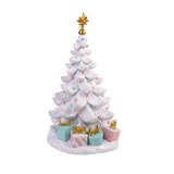 Декоративная фигурка новогодней елки – приятный вариант подарка для близких на праздники, а также изысканное украшение интерьера. Елка отличается аккуратной проработкой деталей и красивым цветовым решением в нежных пастельных оттенках. Высота елочки составляет 27 см, то есть она будет достаточно заметна среди другого декора, при этом не громоздка. Ее можно разместить на полке, на полу и даже использовать для украшения праздничного стола. Декоративная фигурка размером 27х16х15 см выполнена из полирезины.