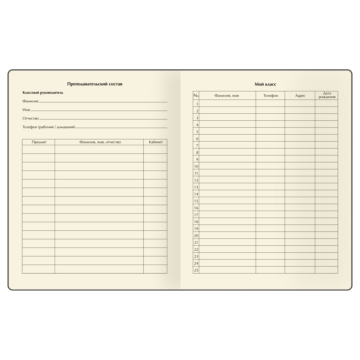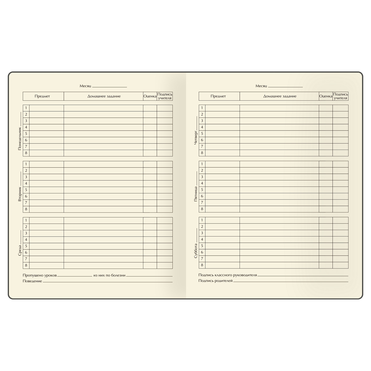 Дневник предназначен для учащихся 1-11 классов, имеет твердую обложку с закругленными уголками из экокожи. Дизайн дополнен полноцветной печатью, тиснением фольгой м декорированной кисточкой из искусственной кожи. Внутренний блок содержит 48 листов тонированной бумаги плотностью 70 г/м² с печатью блока в 1 краску. Формат А5. Тип скрепления – сшивка. Количество уроков – 8. Скругленные уголки обеспечивают безопасность во время использования, а также предотвращают быстрое изнашивание обложки. Закладка-ляссе поможет сразу открыть нужную страницу. В справочном материале собраны основные подсказки для ученика. Школьный дневник является связующим каналом общения между учителями и родителями, а также демонстрирует успеваемость ученика. Классический школьный дневник остается неотъемлемым атрибутом учебной жизни, он помогает школьникам систематизировать информацию, контролировать свой успех и улучшать свою организованность. Кроме того, заполнение дневника способствует развитию навыков самоконтроля и ответственности.