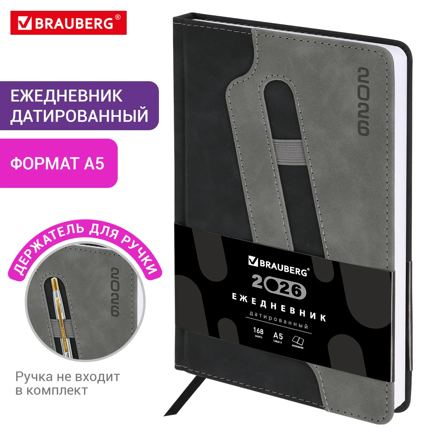 Датированный ежедневник BRAUBERG "Assistant" с оригинальным дизайном обложки. Приятная на ощупь обложка дополнена удобным держателем для ручки. Внутренний блок включает 168 листов белой бумаги плотностью 70 г/м2. Каждая страничка имеет перфорированный угол. Благодаря стандартному формату А5 (138х213 мм) ежедневник удобно использовать как в офисе, так и на выездных деловых встречах. Твердая обложка стилизована под гладкую кожу с мягкой подложкой. Материал обложки подходит для горячего тиснения. Дополнением является закладка-ляссе, с помощью которой при необходимости можно быстро открыть ежедневник на нужной странице, и держатель для ручки на обложке ежедневника для удобства пользователя. Ежедневник снабжен обширным справочным материалом. В конце имеются 4 страницы для записей и заметок.