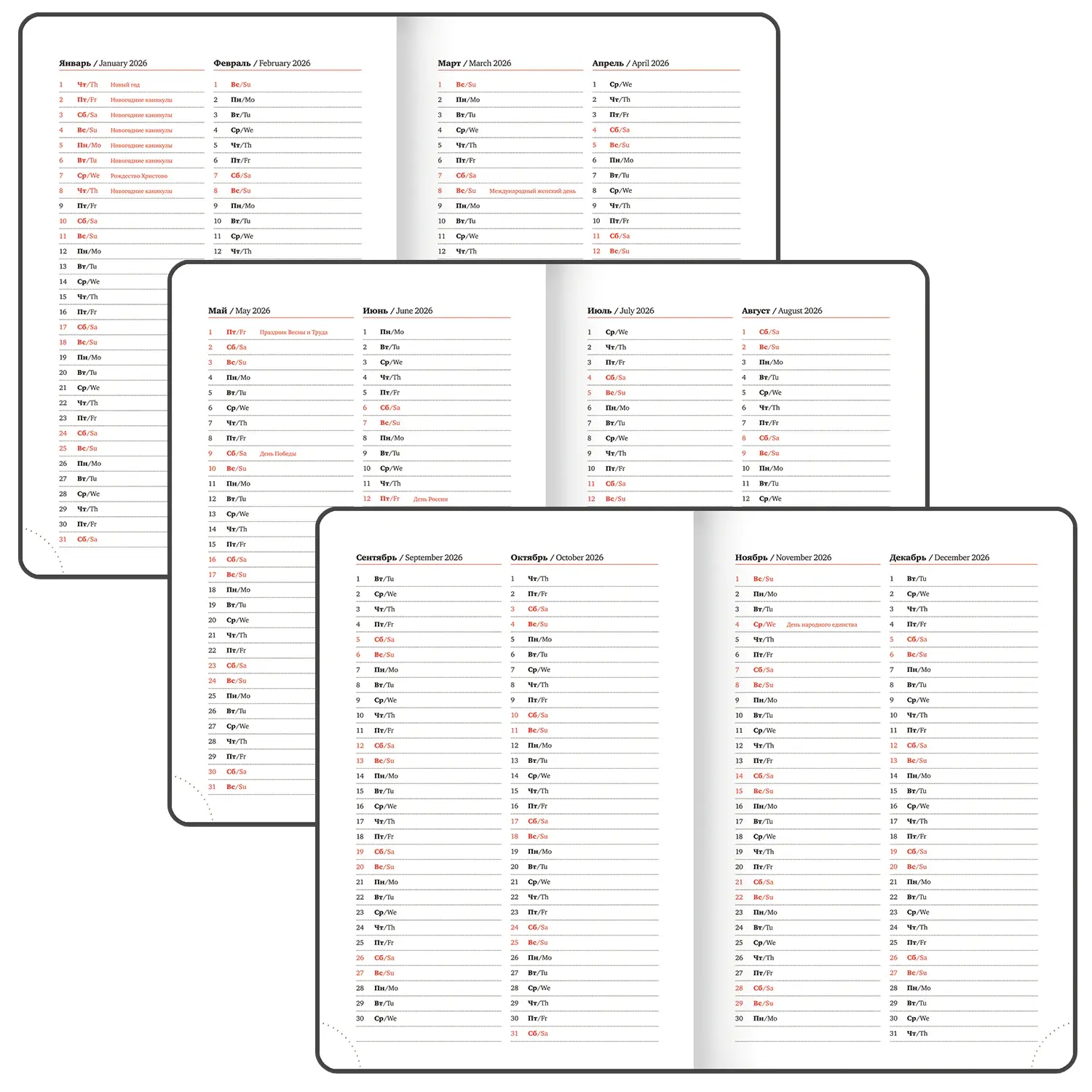 Особенности ежедневников, тетрадей, календарей: Ляссе , Закругленные углы , Справочная информация
