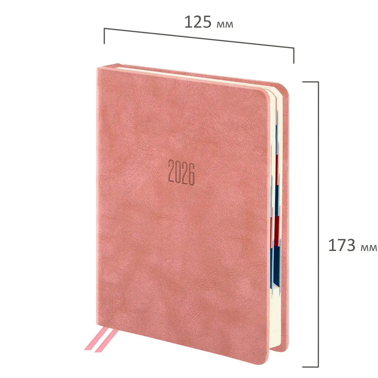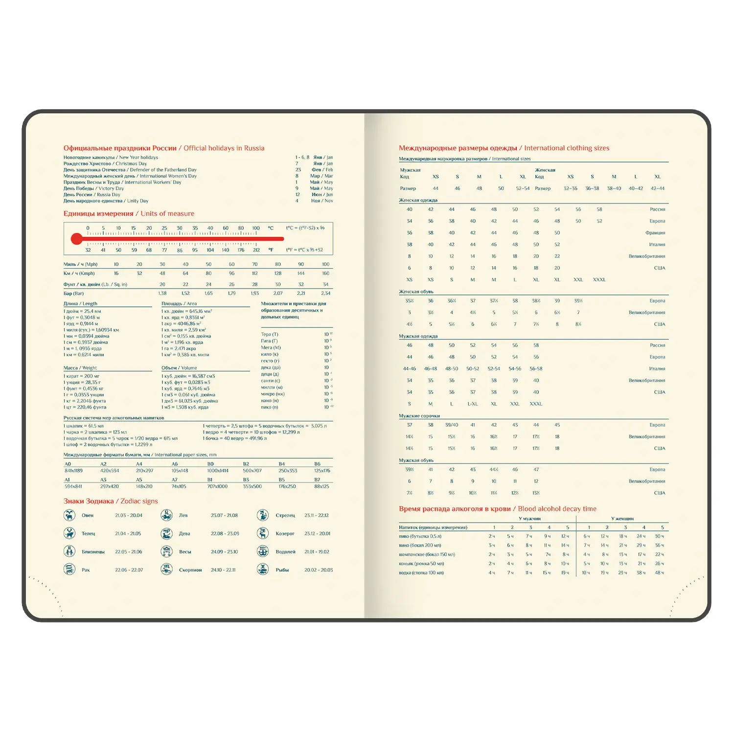 Датированный ежедневник серии "Vivid" от GALANT – надежный спутник делового человека. Внутренний блок включает 168 листов кремовой бумаги плотностью 70 г/м2. Каждая страничка имеет перфорированный угол. Благодаря небольшому формату B6 (125х173 мм) ежедневник удобно использовать как в офисе, так и на выездных деловых встречах. Твердая обложка стилизована под текстурную кожу. Материал обложки подходит для горячего тиснения. Дополнением является закладка-ляссе, с помощью которой при необходимости можно быстро открыть ежедневник на нужной странице, а также вырубка по месяцам. Помимо прочего, ежедневник снабжен обширным справочным материалом. В конце есть 6 страниц для записей и заметок.