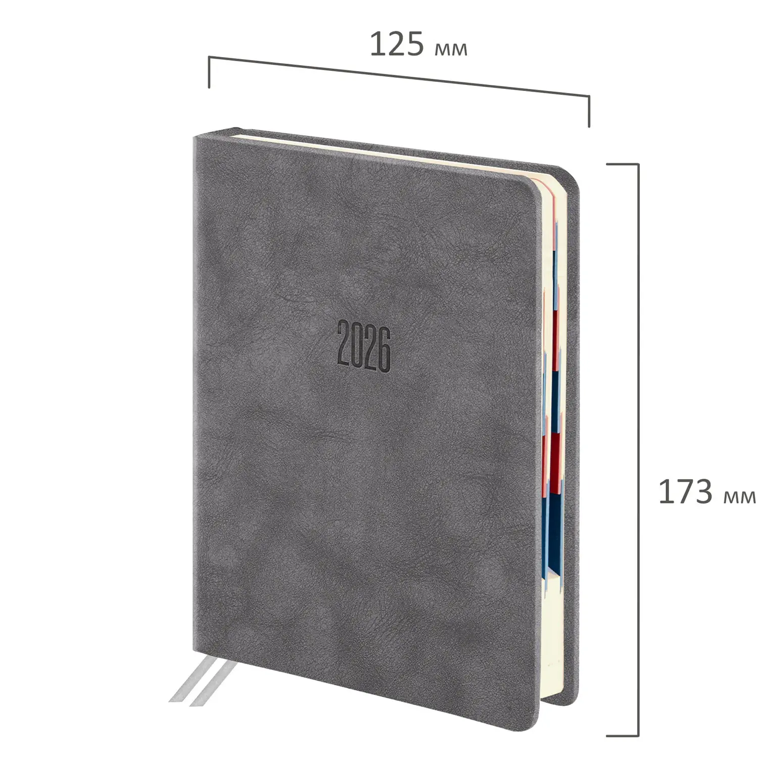 Ежедневник датир. 2026 "Vivid", В6, 168л., серый, под кожу, GALANT