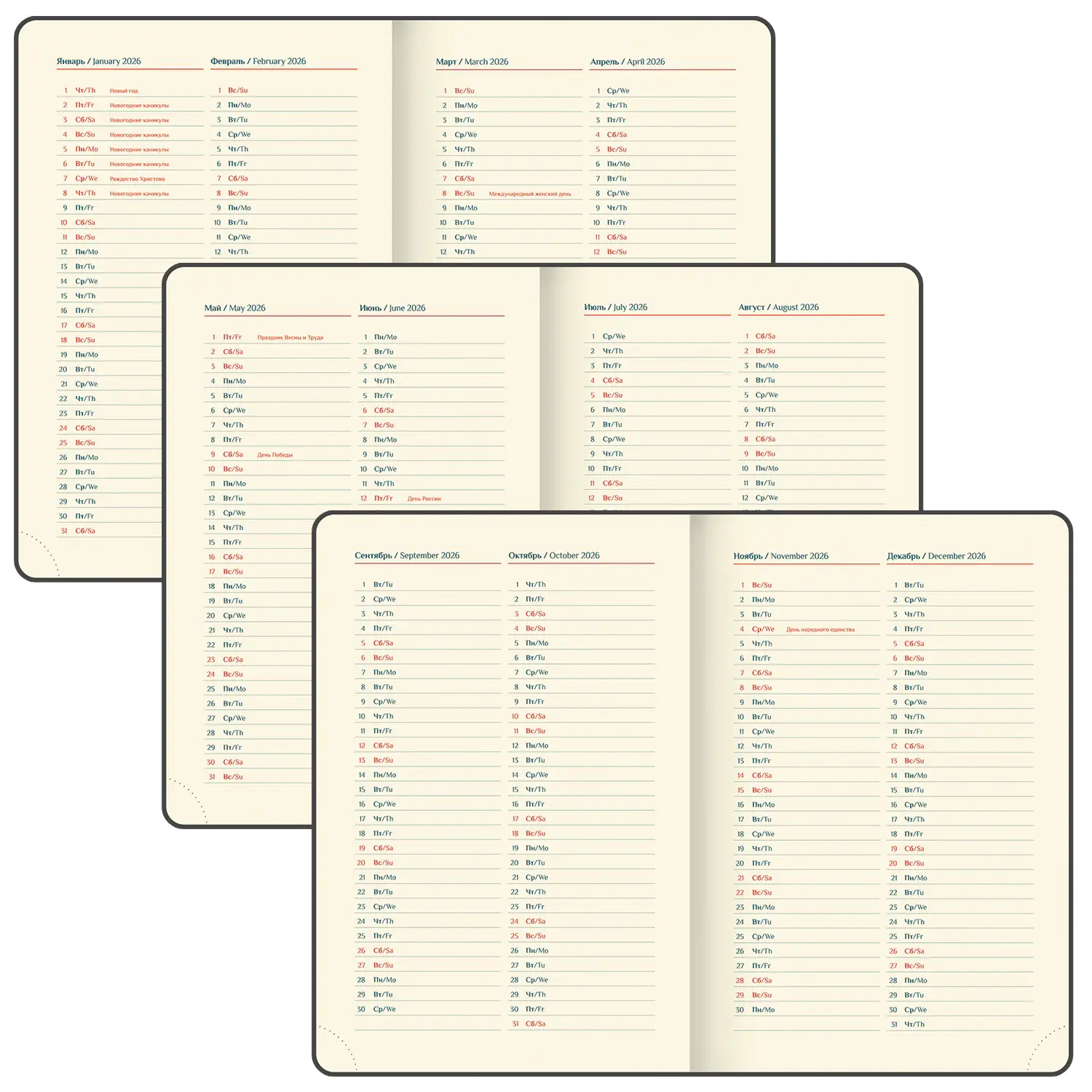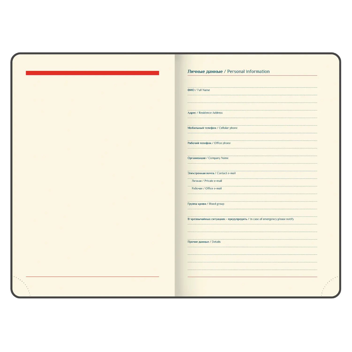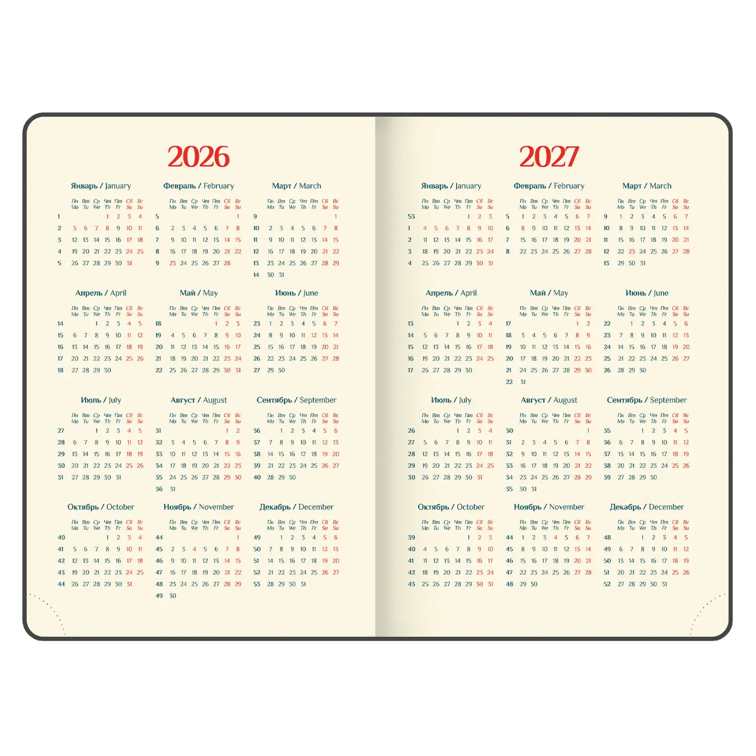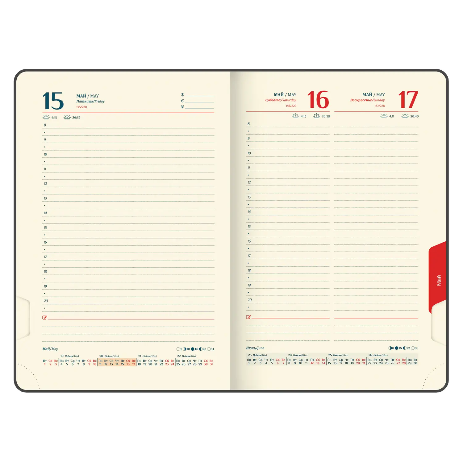 Датированный ежедневник серии "Vivid" от GALANT – надежный спутник делового человека. Внутренний блок включает 168 листов кремовой бумаги плотностью 70 г/м2. Каждая страничка имеет перфорированный угол. Благодаря небольшому формату B6 (125х173 мм) ежедневник удобно использовать как в офисе, так и на выездных деловых встречах. Твердая обложка стилизована под текстурную кожу. Материал обложки подходит для горячего тиснения. Дополнением является закладка-ляссе, с помощью которой при необходимости можно быстро открыть ежедневник на нужной странице, а также вырубка по месяцам. Помимо прочего, ежедневник снабжен обширным справочным материалом. В конце есть 6 страниц для записей и заметок.