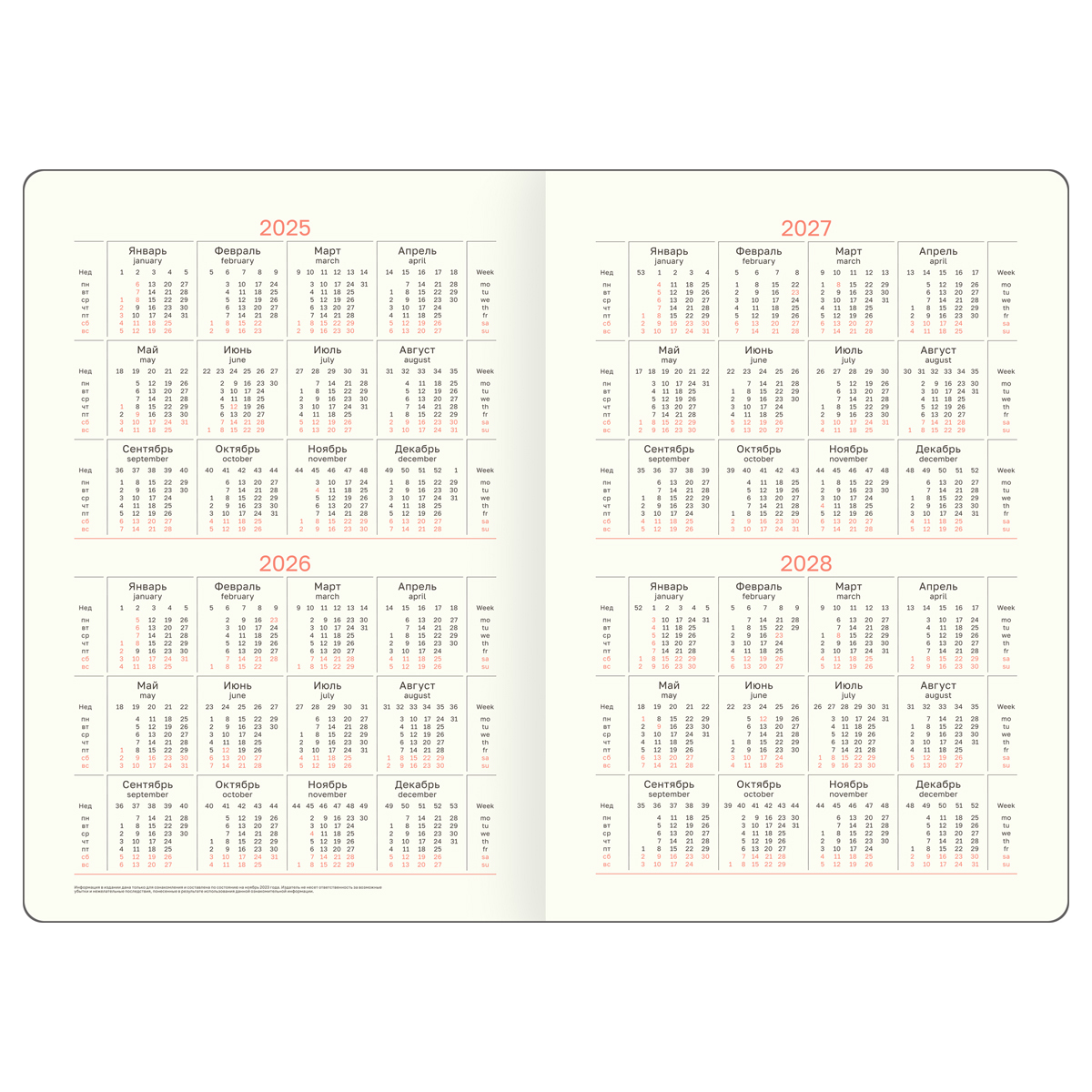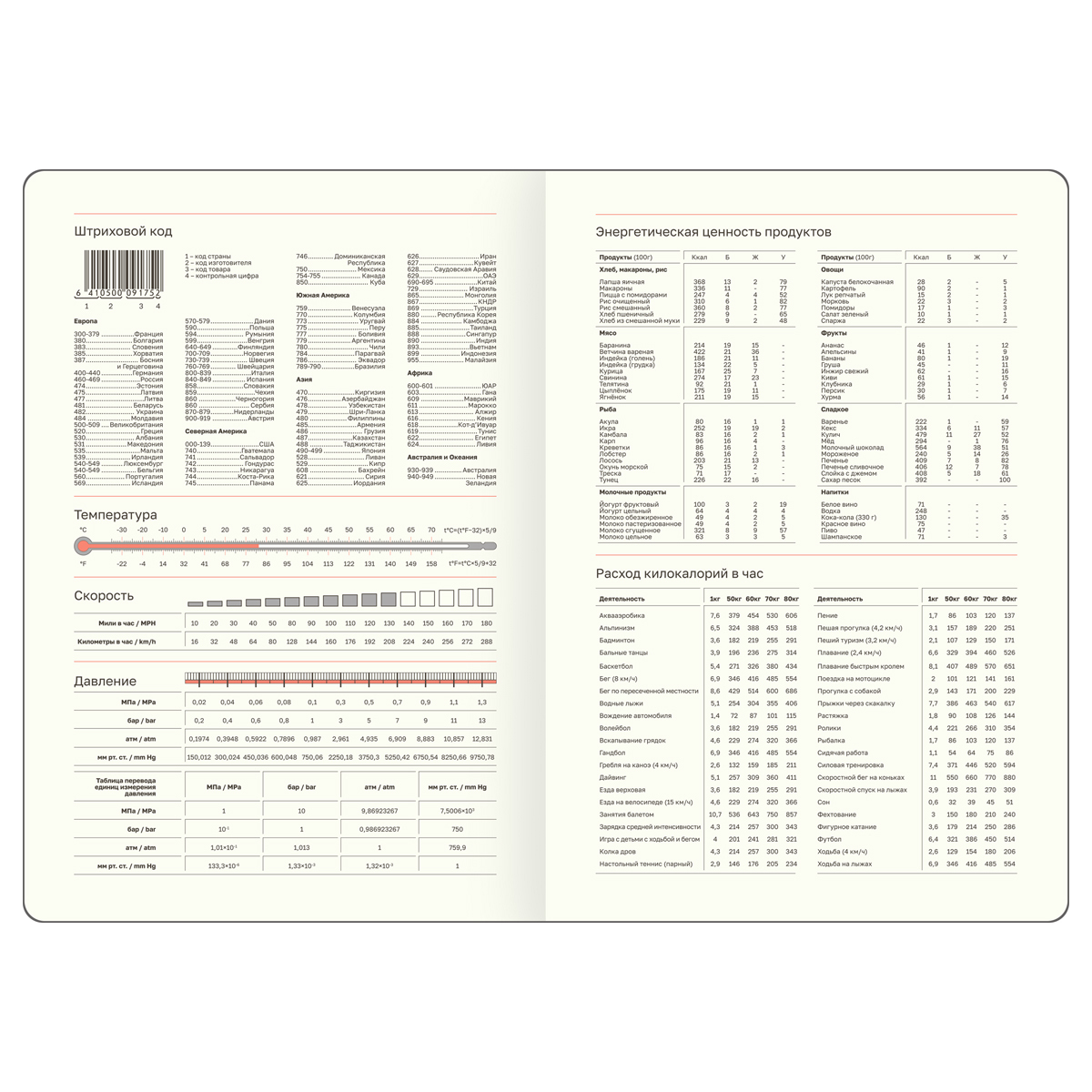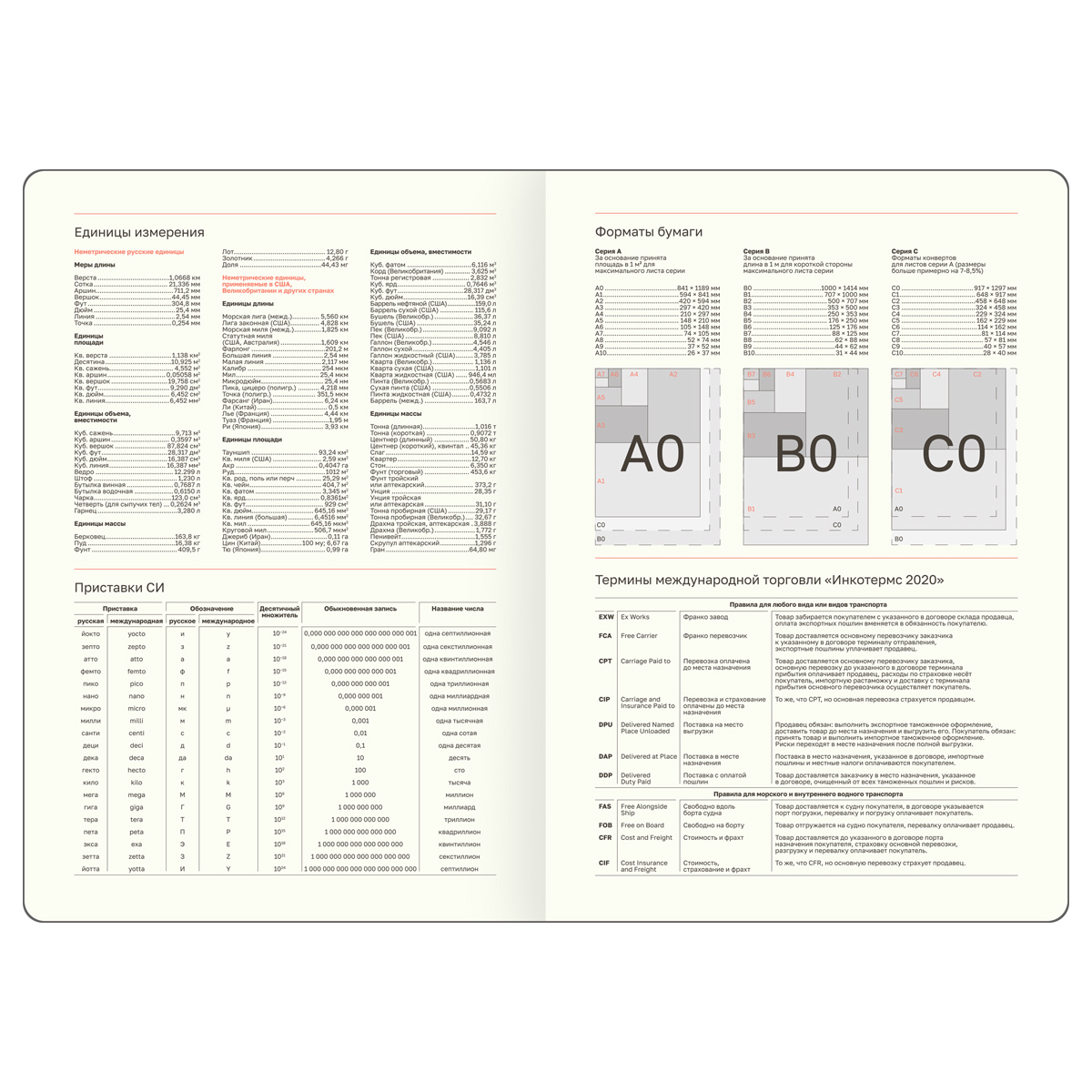 Перфорированные уголки и закладка-ляссе обеспечат комфорт и удобство при использовании. В ежедневнике предусмотрена справочная информация, годовой планер, календарь и другие полезные сведения. Подходит под персонализацию. Индивидуальная упаковка в термоусадочную пленку.
