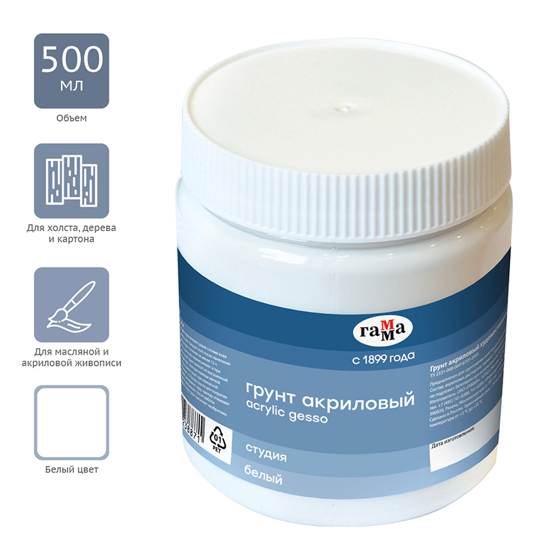 Грунт акриловый "Гамма" используется в масляной и акриловой живописи для грунтовки холста. Грунт практичен и удобен в использовании. Изготавливается на основе дисперсии акриловой смолы. Служит отличной платформой для нанесения любых красок, прекрасно сцепляясь с одной стороны с основой, а с другой - с краской.