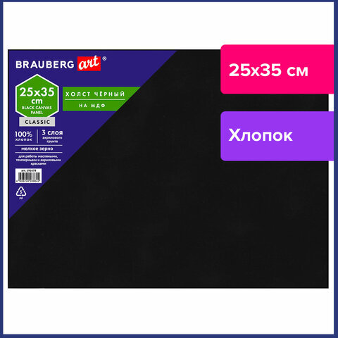 Черный грунтованный холст на МДФ BRAUBERG ART «CLASSIC» используется для работы масляными, темперными и акриловыми красками. Предназначен как для начинающих художников, учеников и студентов художественных школ, так и для профессионалов. Прочная поверхность холста выдерживает множество слоев краски и воздействие разбавителей, хорошо переносит изменения влажности и температуры. Грунтованное мелкозернистое полотно из 100% хлопка плотностью 280 г/м2 наклеено на основу из МДФ. Холст на МДФ легче и меньше по сравнению с холстами на подрамнике, тем самым он очень удобен для транспортировки. В то же время холст на МДФ прочнее холста на картоне. Размер — 25х35 см.
