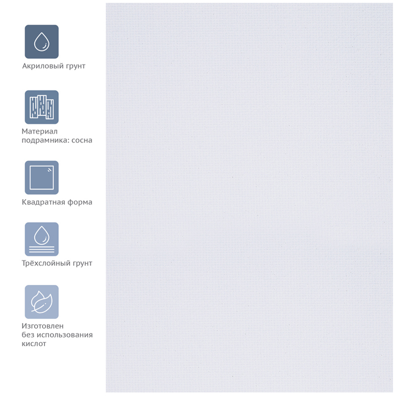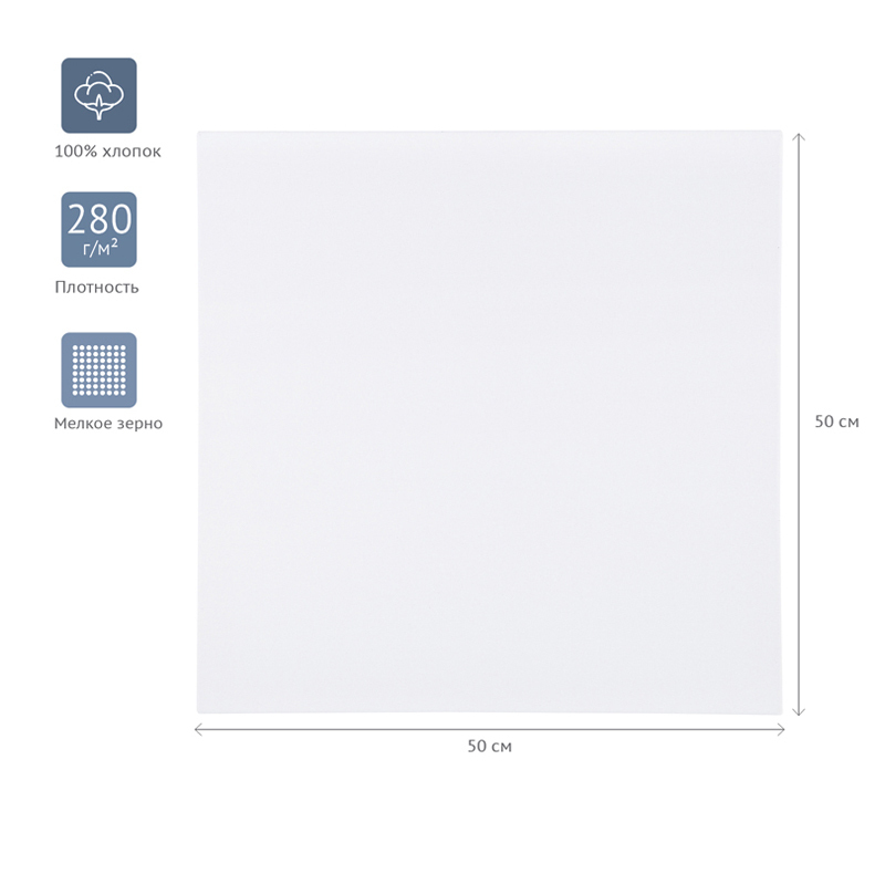 Хлопковый холст на подрамнике ГАММА серии «Студия», грунтованный, подойдёт для живописи масляными, акриловыми, темперными и гуашевыми красками. Основа – натуральное полотно, 100% хлопок, мелкое зерно. Холст квадратной формы плотностью 280 г/м2, размер – 50*50 см. Холст покрыт акриловым грунтом, а подрамник выполнен из сосны. Изготовлен без использования кислот.