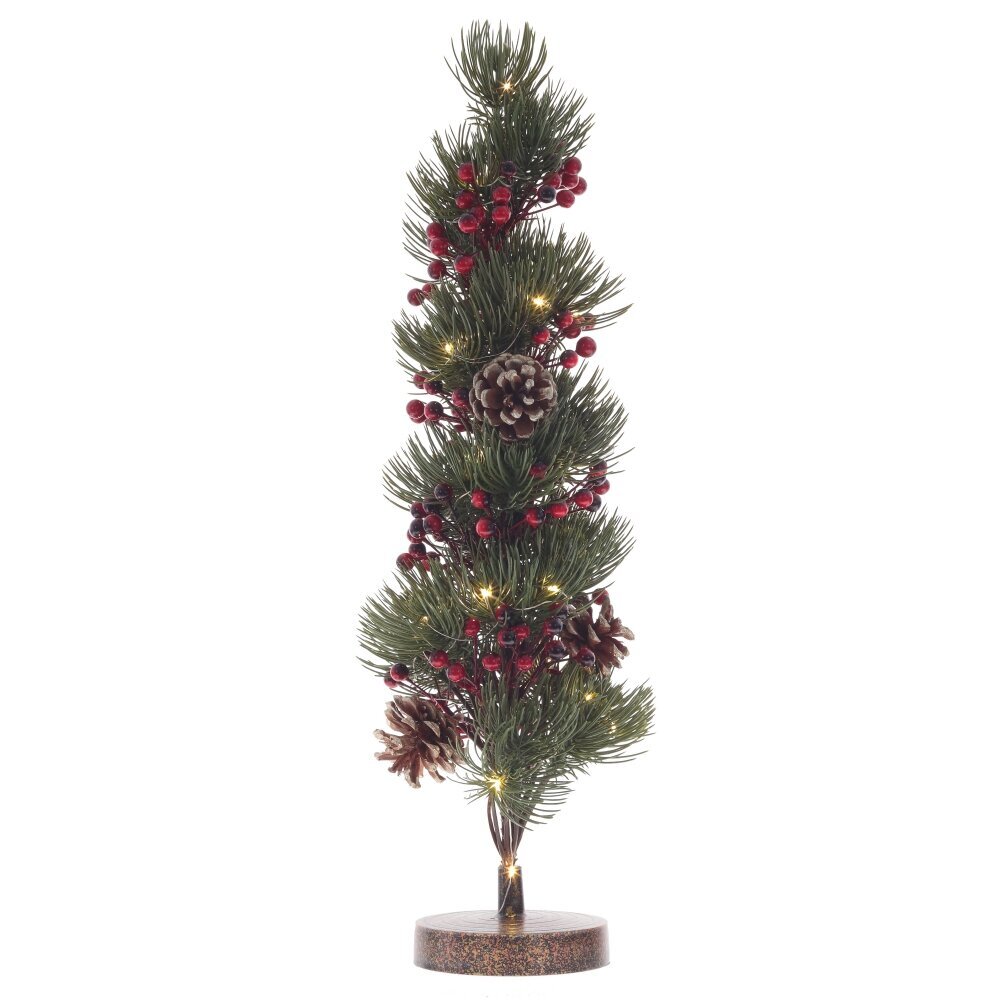 Декоративное изделие с подсветкой "Елка" – это изящная искусственная елочка, установленная на круглой подставке. Елка украшена еловыми шишками и яркими красными ягодами, что создает праздничное настроение. Она дополнена гирляндой с мягким теплым светом, что придаёт интерьеру уют и атмосферу праздника. Это изделие работает от трех батареек типа AA (в комплект не входят), что позволяет легко размещать елочку в любом месте. Идеально подходит для новогодних декораций в доме или офисе.