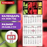 Квартальный календарь BRAUBERG "Фрукты" предназначен для делового планирования. Офисный календарь на 2026 год на 3 гребнях. Состоит из 3 блоков с календарными сетками на три месяца – предыдущий, текущий и последующий. Блок календаря напечатан на офсетной бумаге плотностью 65 г/м2. Подложка изготовлена из мелованного картона плотностью 235 г/м2. Курсор-бегунок выделяет текущую дату. Вертикальный формат. Размер – 29,5х68,2 см. Поставляется в индивидуальной упаковке (полибег) с европодвесом и прокладкой из гофрокартона, что обеспечивает дополнительную защиту товара.