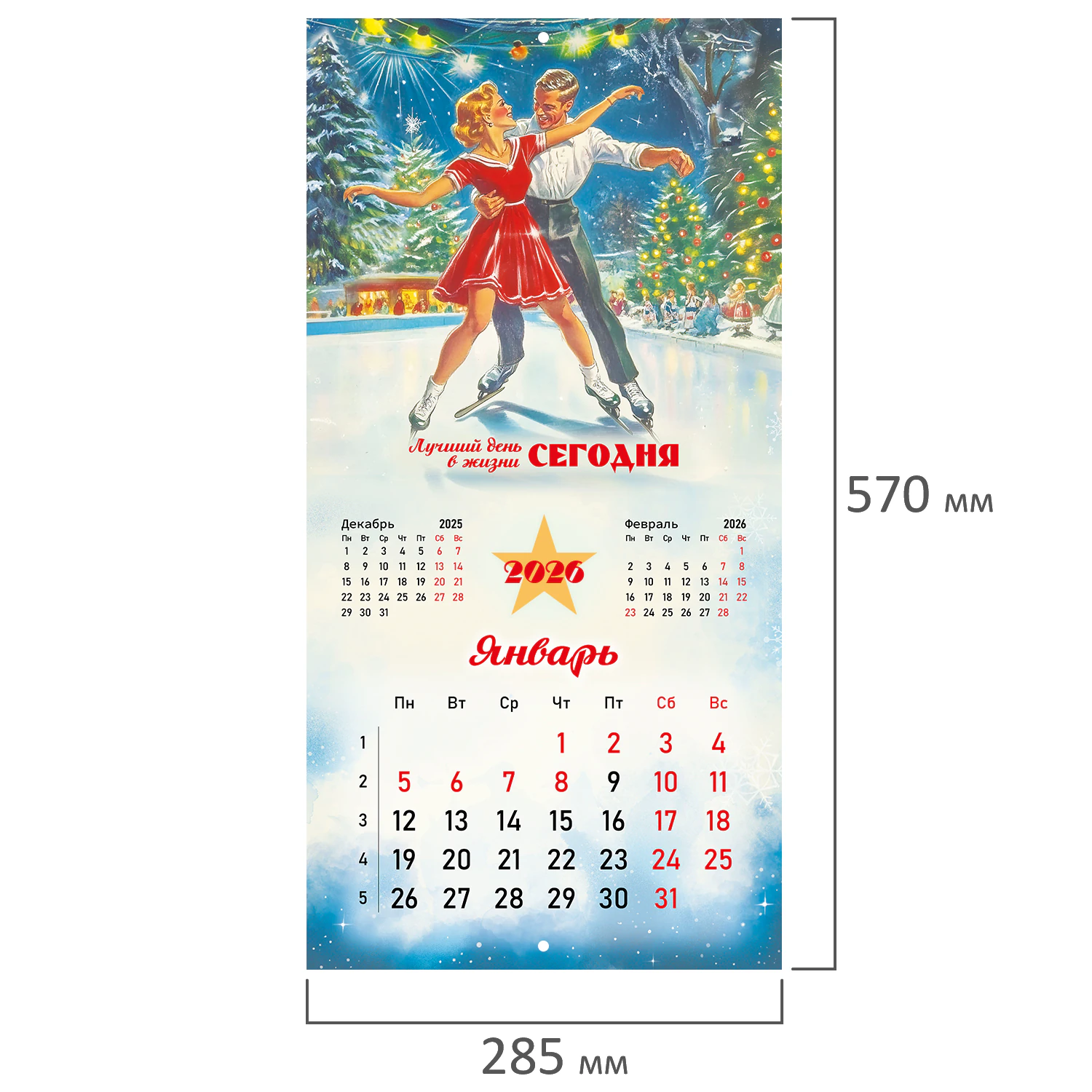 Настенный перекидной календарь BRAUBERG востребован в офисах, на предприятиях и дома. Сочетает функциональность и эстетическую привлекательность. Яркая, красочная картинка дополнена календарной сеткой на месяц. Содержит 12 листов. Блок календаря напечатан на мелованной бумаге плотностью 130 г/м2. Оригинальная обложка изготовлена из мелованной бумаги плотностью 230 г/м2. Размер – 28,5х28,5 см, в развороте – 28,5х57 см. Дополнен отверстием для удобства крепления.