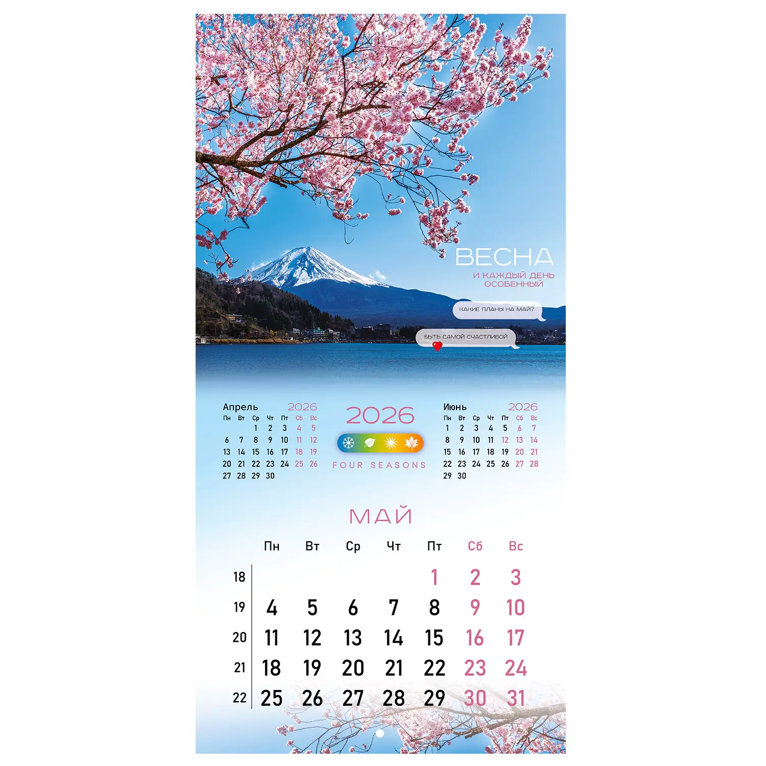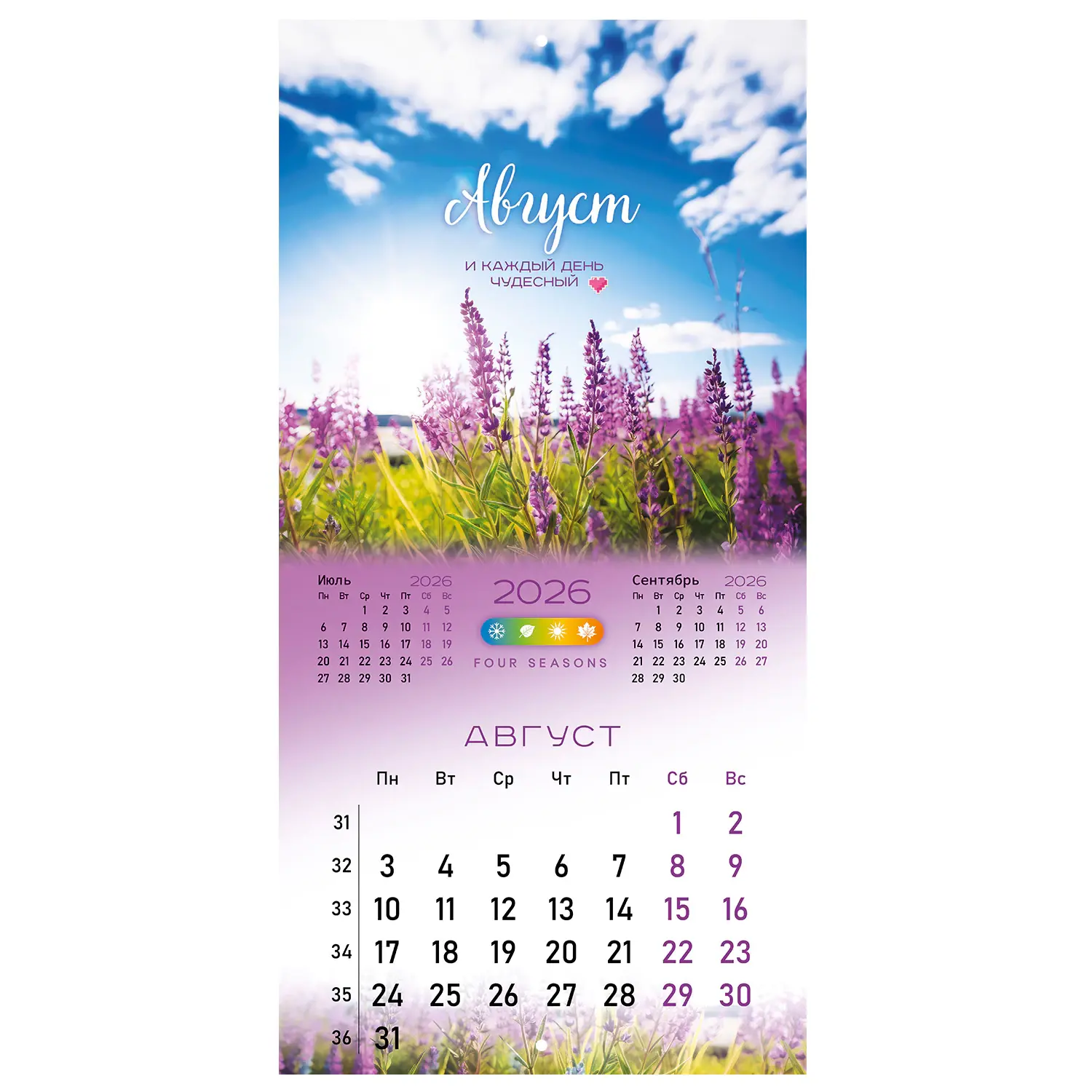 Настенный перекидной календарь BRAUBERG востребован в офисах, на предприятиях и дома. Сочетает функциональность и эстетическую привлекательность. Яркая, красочная картинка дополнена календарной сеткой на месяц. Содержит 12 листов. Блок календаря напечатан на мелованной бумаге плотностью 130 г/м2. Оригинальная обложка изготовлена из мелованной бумаги плотностью 230 г/м2. Размер – 28,5х28,5 см, в развороте – 28,5х57 см. Дополнен отверстием для удобства крепления. Поставляется в индивидуальной упаковке (полибэг) с европодвесом и прокладкой из гофрокартона, что создает товару дополнительную защиту.
