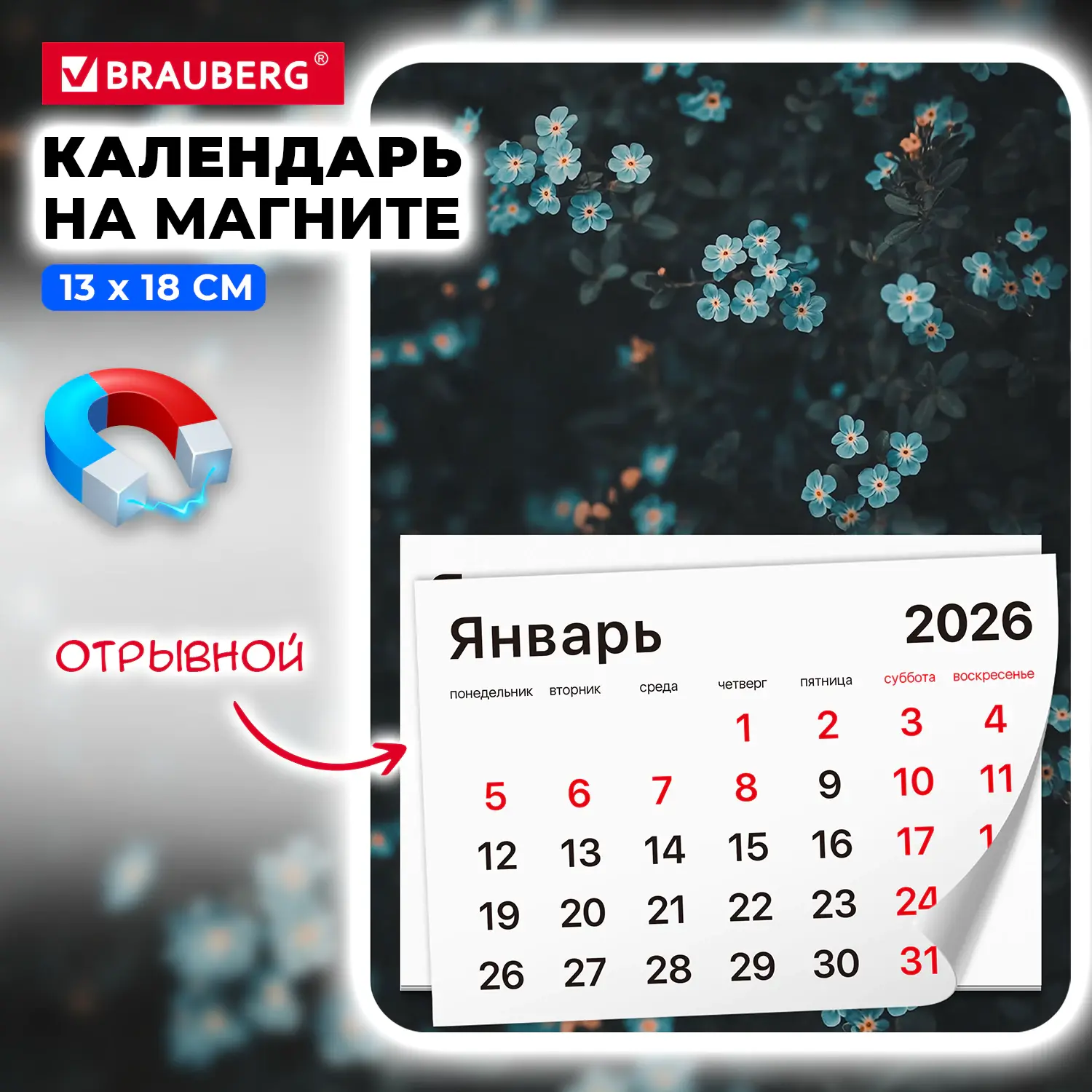 Календарь отрывной на магните BRAUBERG предназначен для делового и бытового планирования. 12 листов календарной сетки на офсетной бумаге плотностью 80 г/м2 в 2 краски. Подложка изготовлена из импортного картона плотностью 300 г/м2. Сильный магнит на обратной стороне. Размер – 13х18 см. Поставляется в индивидуальной упаковке (полибег) с европодвесом.