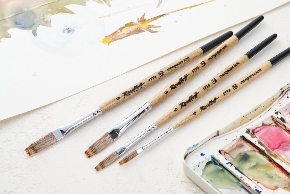 Художественная кисть-шлейф из универсального синтетического ворса подходит для всех видов живописи и декоративных работ. Незаменима для работы с акварелью, в изображении скетчей растений, анималистике, природном пейзаже и др. Удлиненная двойная выставка ворса с тонкой кромкой делает ворс кисти послушным и маневренным, касание деликатным, а мазок точным и живописным. Кистью можно вести полностью всю работу, так как она выполняет множество приемов: можно положить пастозный крупный мазок и изящный маленький, можно провести тонкую линию, рисовать текстуры, а чистой сухой кистью смахнуть или стушевать красочный слой. Кисть имеет лакированную ручку из березы. Номер кисти - №4.