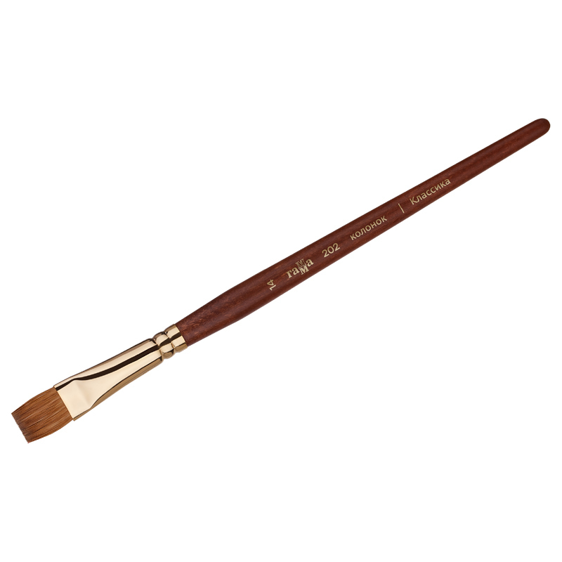 Кисть натуральная колонок Гамма, плоская №14, короткая ручка. Художественные кисти ГАММА изготовлены из натурального ворса колонка. Изделия предназначены для работы с акварельными, гуашевыми и акриловыми красками. В масляной живописи колонок используют для нанесения гладких, ровных и точных мазков. Волос колонка обладает уникальными свойствами – он одновременно длинный, упругий, эластичный и прочный. Благодаря большей, чем у белки, упругости, кисть позволяет лучше контролировать мазок. Кисть вяжут из волосков разной длины, что позволяет при соприкосновении наполненной кисти с поверхностью создать капиллярный поток краски. Важно проводить своевременный и правильный уход за кистью: очищать от краски до того как она засохнет. Цветная матовая ручка выполнена из дерева, бесшовная никелированная обойма придаёт изысканность серии кистей «Классика»
