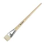 Кисть натуральная щетина Roubloff (Рублев) серии "1622", плоская №24, удлиненная ручка. Для художественных кистей применяют волос щетины, форма которого очень напоминает форму колонка: все волосики имеют одинаковый диаметр и заострены к вершинке. Волосики с расщепленной вершинкой практически отсутствует. Для того чтобы волос был более мягким и удерживал необходимую форму, его варят и отбеливают. Кисти данной серии гарантируют качественный мазок. Кисти серии 1622 имеют алюминиевую анодированную обойму и длинную ручку из древесины бука, пропитанную лаком. Кисти будут надежно удерживать волос при работе с ацетоном в течение 2-х часов. Используются для создания колеровки, нанесения фона, прорисовки фигур и краеугольных форм. Щетинные кисти данной серии применяются для густых красок: акрила, масла, темперы. Кисть плоская из щетины, обойма алюминиевая, ручка длинная, пропитана лаком.