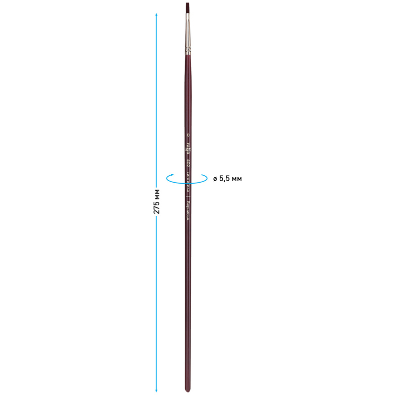 Кисть синтетика Гамма "Вернисаж", плоская №0, длинная бордовая ручка. Художественные кисти серии «Вернисаж» средней жёсткости выполнены из высококачественного синтетического ворса бордового цвета, обладают повышенной износоустойчивостью, хорошо держат форму. Кисти серии «Вернисаж» собраны из тончайшего синтетического ворса, хорошо набирают краску и позволяют контролировать отдачу красок. Кисть предназначена для работы с акриловыми красками, отлично сочетает упругость с удивительно тонким чувством мазка. На усмотрение художника может использоваться с масляными красками и другими материалами для живописи и декорирования. Пучок кисти проклеен химически-стойким клеем и надежно прикреплен к древку кисти. Кисти выполнены на длинной ручке, покрытой глянцевым лаком насыщенного бордового цвета, совпадающим с цветом ворса. Кисть имеет никелированную бесшовную обойму и цветную лакированную ручку.