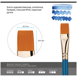 Кисть синтетика Гамма, плоская №18, короткая ручка. Кисти Гамма из синтетического волоса серии «Галерея» изготовлены из высококачественной рыжей мягкой синтетики производства Японии и предназначены для работы акварельными, гуашевыми и акриловыми красками. Тончайший синтетический волос, используемый при производстве кистей данной серии, позволяет хорошо набирать и отдавать краску, при этом отлично держит форму, обладает большой упругостью и позволяет лучше контролировать мазок. Кистью легко писать детали, выполнять заливки и моделировать объём. Бережно взаимодействует с бумагой, подходит для работы в технике лессировки. Идеально подходит для любителей ботанической живописи. Кисть имеет никелированную бесшовную обойму и цветную лакированную ручку.