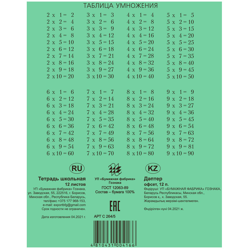 Комплект из 10 ученических (школьных) тетрадей в клетку. Тонкие тетради в клетку подходят для выполнения домашних и контрольных работ. Удобны даже для школьников младшего возраста. Обложка -обложечная бумага. На обратной стороне обложки расположена таблица умножения. Внутренний блок - офсетный 60 г/м2 в клетку. Белизна внутреннего блока -96%. Формат тетради - А5, 12 листов.