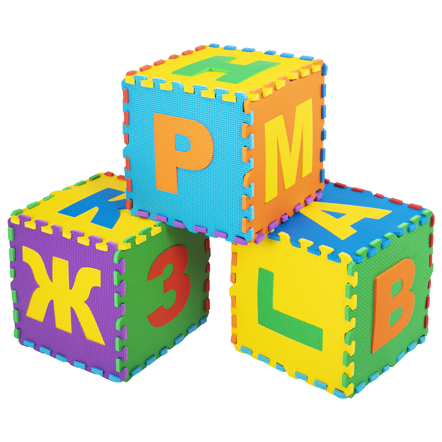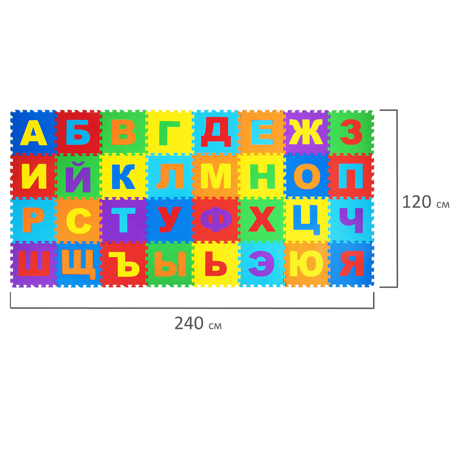 Мягкие коврики обладают теплоизоляционными и шумоизоляционными свойствами. Легко собираются и разбираются, удобны и компактны в хранении. Коврик-пазл состоит из 32 квадратных элементов размерами 30х30 см. Толщина элементов составляет 1 см. Общая площадь - 240х120 см. Коврик содержит разборные элементы в виде букв русского алфавита, благодаря чему носит не только развлекательный, но и обучающий характер. Яркие, разнообразные цвета заинтересуют ребенка. Коврик обладает антискользящим эффектом, смягчает удары при падении. Играть на коврике удобно и тепло. Разборные элементы легко вынимаются и собираются обратно, квадратные элементы-пазлы позволяют строить различные сооружения, способствуя развитию моторики и пространственного мышления. Коврики изготовлены из безопасного, мягкого и лёгкого материала - этиленвинилацетата (100% ЭВА). После вскрытия упаковки перед первым использованием рекомендуется промыть элементы коврика-пазла теплой водой с мылом и просушить. Внимание! Цвета деталей коврика могут отличаться от представленных на фото.