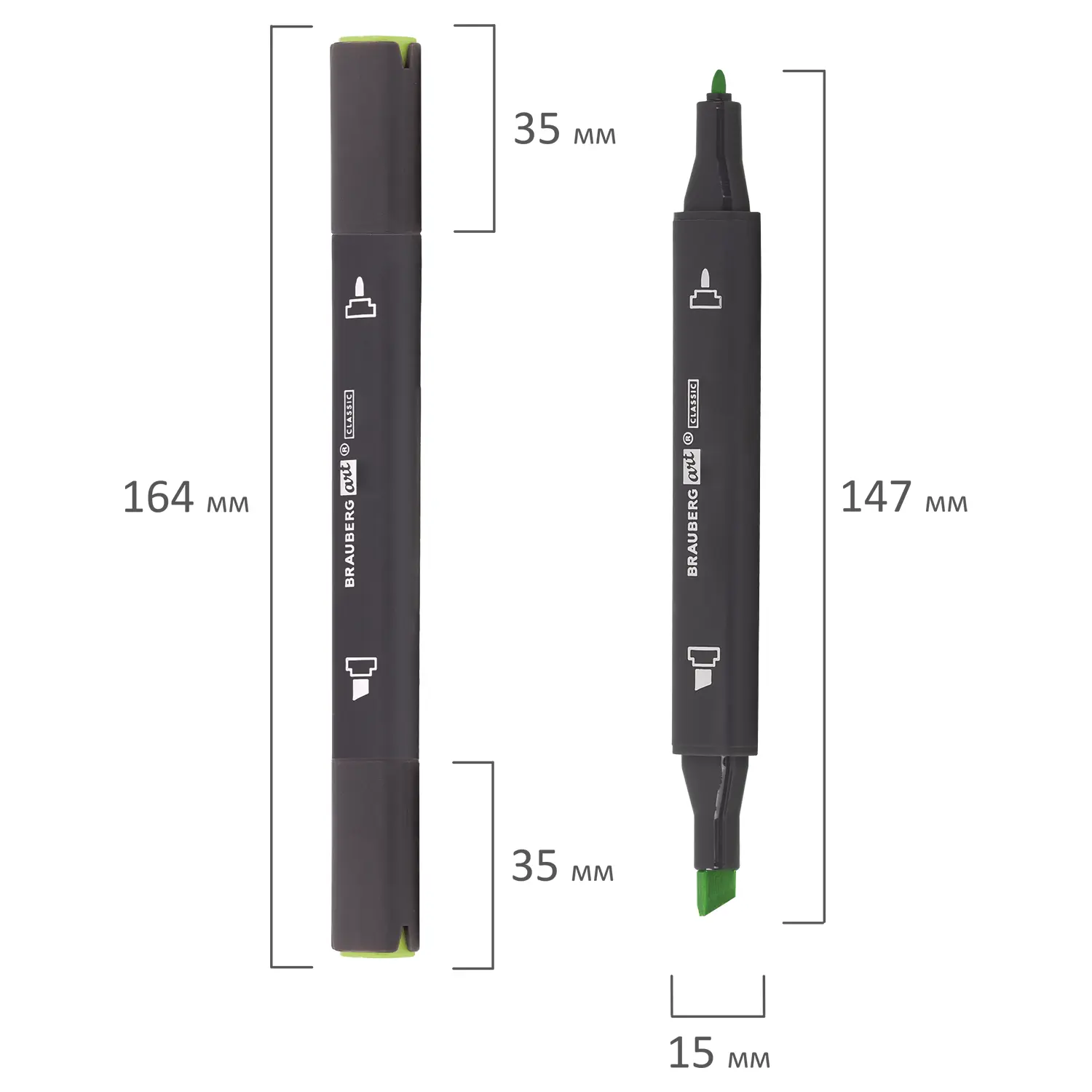Маркер для скетчинга BRAUBERG ART "CLASSIC" для повседневного использования. Маркер для скетчинга и рисования подходит для использования на бумаге. Двусторонний маркер для скетчинга с треугольной формой корпуса из пластика, диаметр которого 15 мм. Форма наконечника - тонкий и скошенный. Цвет - желто-зеленый. Толщина линии письма - 1-6 мм в зависимости от наконечника. Особая основа маркера обеспечивает такие качества, как стойкость к воздействию воды, ультрафиолету, низких и высоких температур. Благодаря спиртовой основе чернила быстро сохнут и не размазываются. Износостойкий фетровый наконечник устойчив к повреждениям и обеспечивает экономный расход чернил. Изделие не перезаправляется. Плотно закрывается колпачком, что предотвращает высыхание наконечника и чернил. Цвет колпачка соответствует цвету чернил.