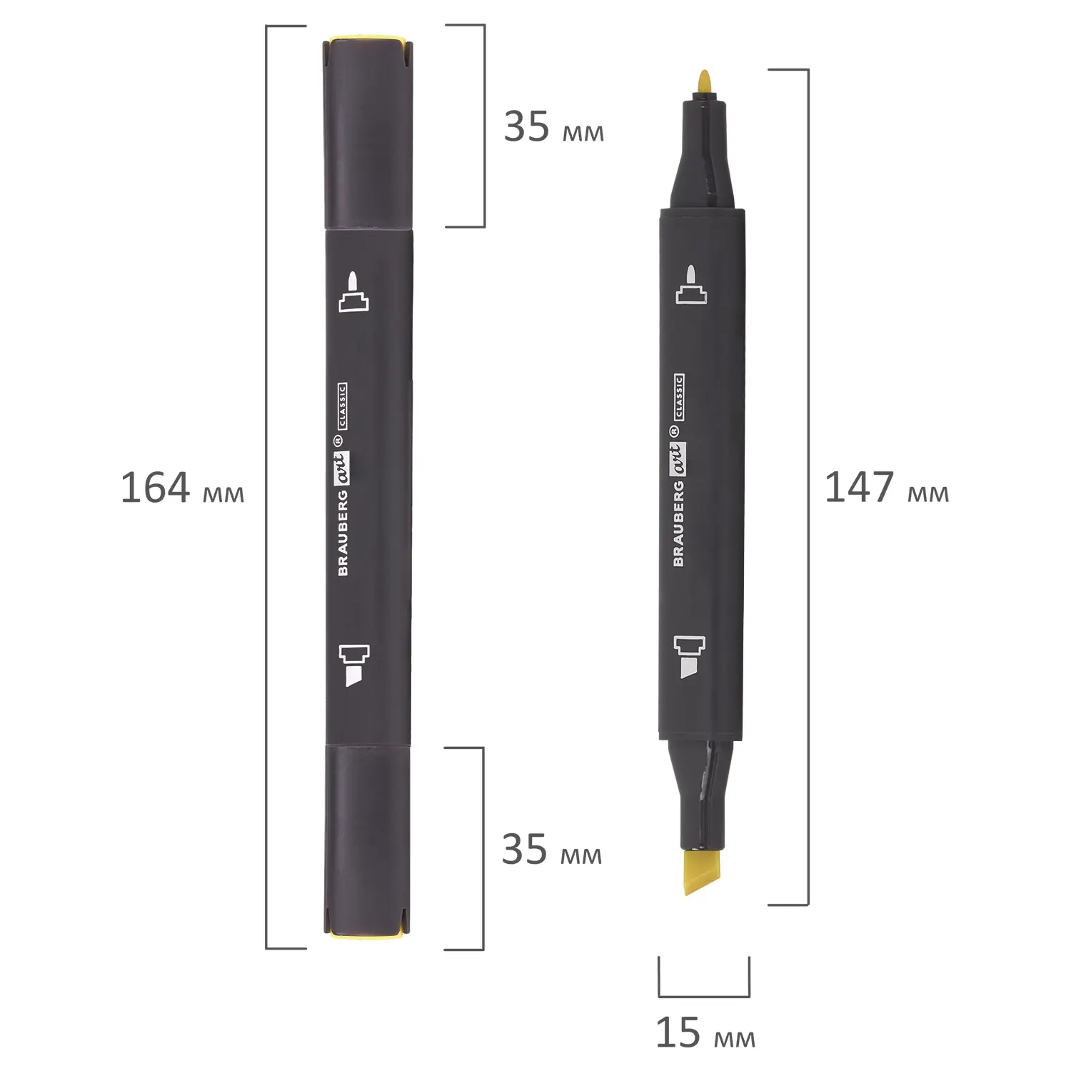 Маркер для скетчинга BRAUBERG ART "CLASSIC" для повседневного использования. Маркер для скетчинга и рисования подходит для использования на бумаге. Двусторонний маркер для скетчинга с треугольной формой корпуса из пластика, диаметр которого 15 мм. Форма наконечника - тонкий и скошенный. Цвет - желтый канареечный. Толщина линии письма - 1-6 мм в зависимости от наконечника. Особая основа маркера обеспечивает такие качества, как стойкость к воздействию воды, ультрафиолету, низких и высоких температур. Благодаря спиртовой основе чернила быстро сохнут и не размазываются. Износостойкий фетровый наконечник устойчив к повреждениям и обеспечивает экономный расход чернил. Изделие не перезаправляется. Плотно закрывается колпачком, что предотвращает высыхание наконечника и чернил. Цвет колпачка соответствует цвету чернил.
