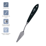Паяный мастихин № 13 из нержавеющей стали с удобной плоской ручкой из натурального бука. Сварное соединение ручки и лезвия дает больший угол наклона мастихина к холсту, снижая вероятность случайного касания и смазывания краски.