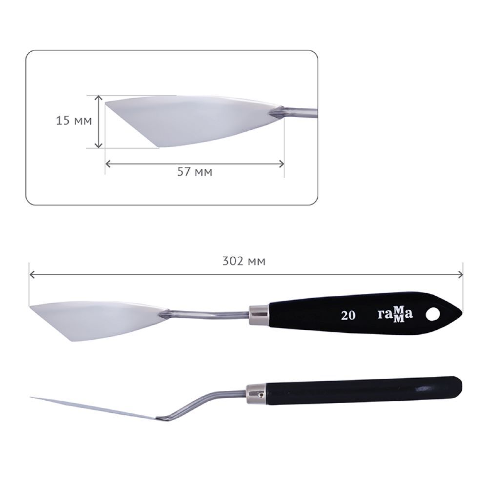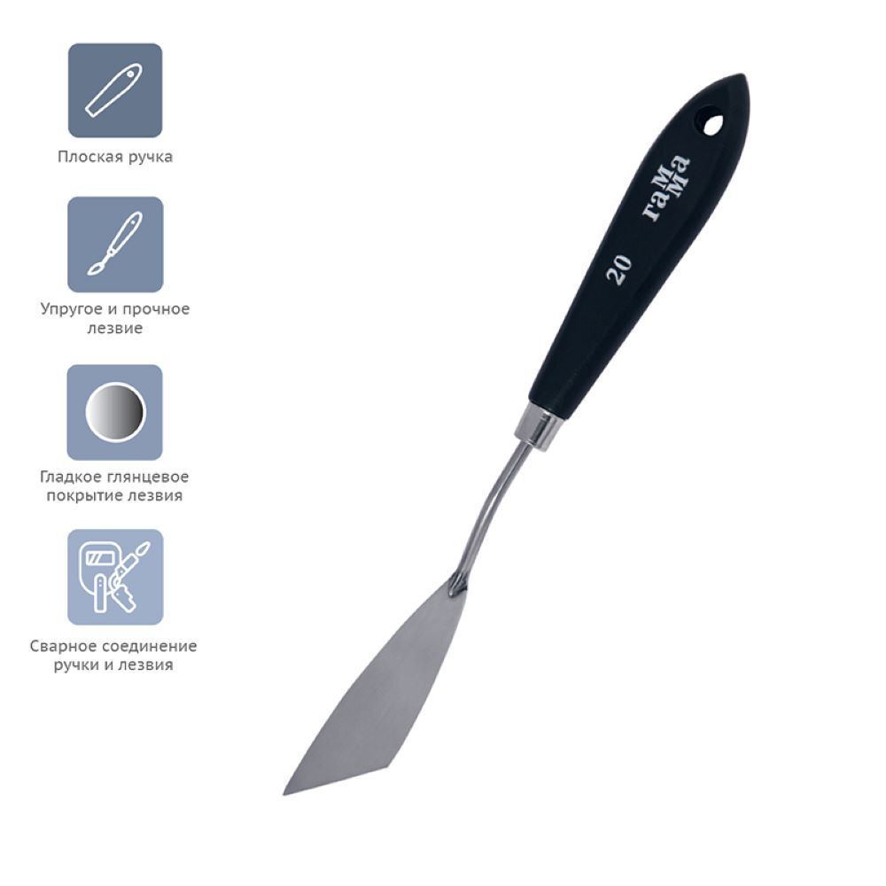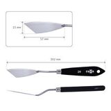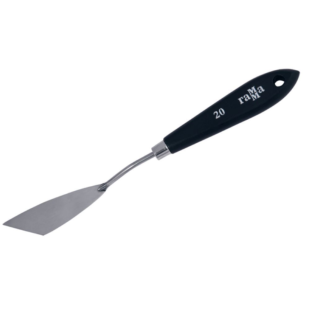 Паяный мастихин из нержавеющей стали с удобной плоской ручкой из натурального бука. Сварное соединение ручки и лезвия дает больший угол наклона мастихина к холсту, снижая вероятность случайного касания и смазывания краски.