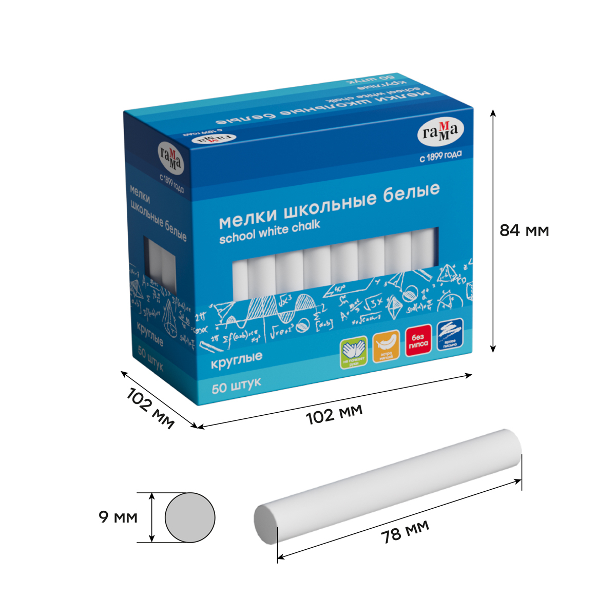 Набор белых мелков для школы идеально подходит для классных и аудиторных досок, а также для рисования и письма на любой шероховатой поверхности (асфальте и тд). Благодаря удобной круглой форме и мягкому письму создать надписи и рисунки очень просто! Набор состоит из 50 мелков белого цвета. Длина мелка — 8 см. Твердость - мягкие. Имеют натуральный состав: на 95 % состоит из чистого мела, не содержит гипс. Мелки легко смываются водой, не имеют выраженного запаха и нетоксичны. Мел удобно лежит в руке, не царапает рабочую поверхность и не создаёт пыль, экономично расходуется. Упакованы в картонную коробку - удобно хранить и брать с собой на прогулки. НЕ РЕКОМЕНДОВАНО ДЛЯ ПИТАНИЯ!