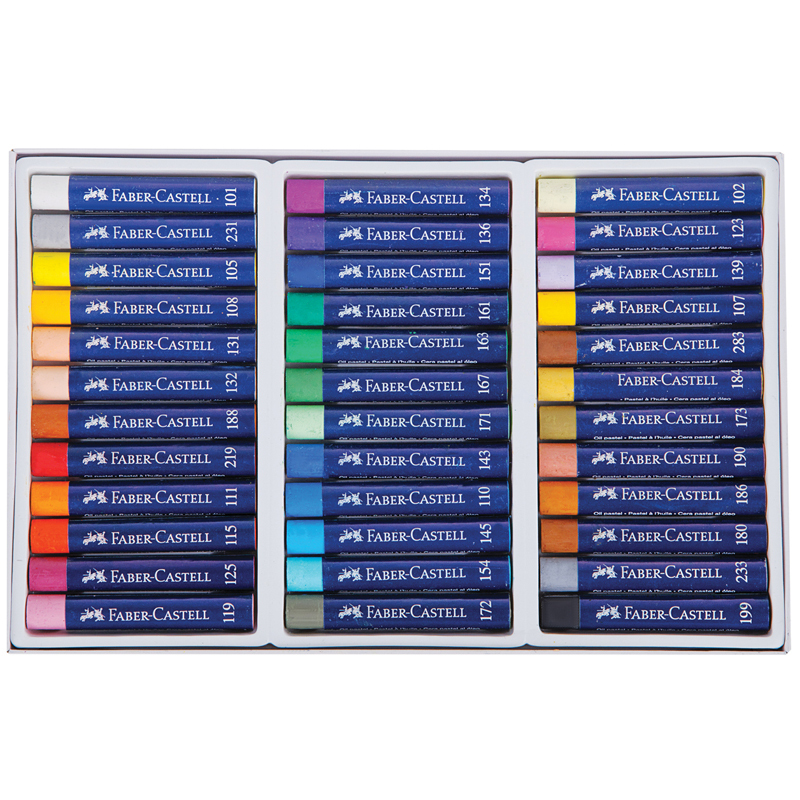 Набор пастели Faber-Castell "Studio Quality Oil Pastels" содержит масляную пастель 36 ярких насыщенных цветов. Пастель выполнена в виде мелков круглой формы, каждый из которых обернут в бумажную гильзу. Длина мелка - 7 см, а диаметр сечения 11 мм.Мелки великолепного качества не крошатся при работе, обладают отличными кроющими свойствами, обеспечивают хорошее сцепление с поверхностью, яркость и долговечность изображения. Масляной пастелью Faber-Castell "Studio Quality Oil Pastels" можно рисовать в любой технике, сочетая ее с цветными карандашами и красками. При работе рекомендуется использовать шероховатые поверхности - специальную бумагу, картон, холст.