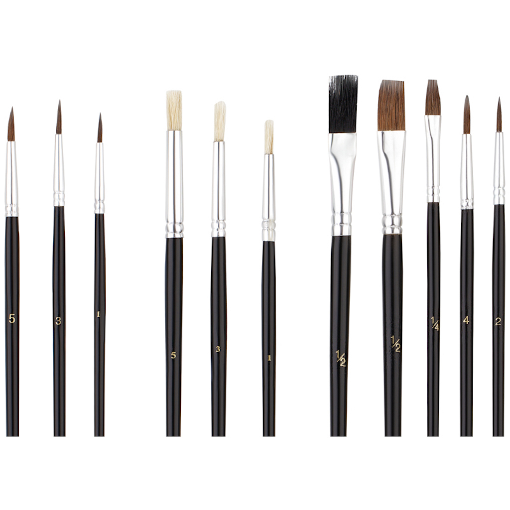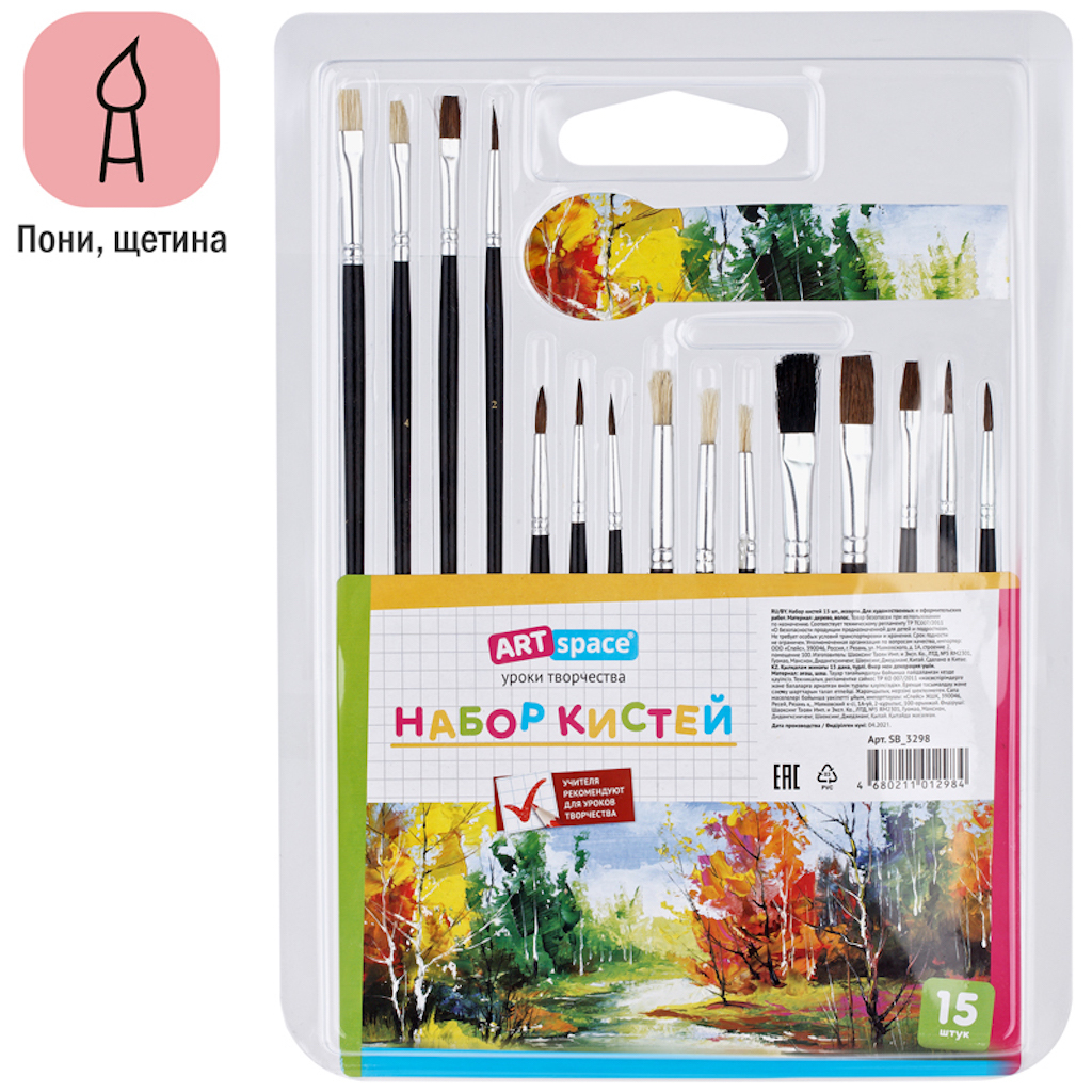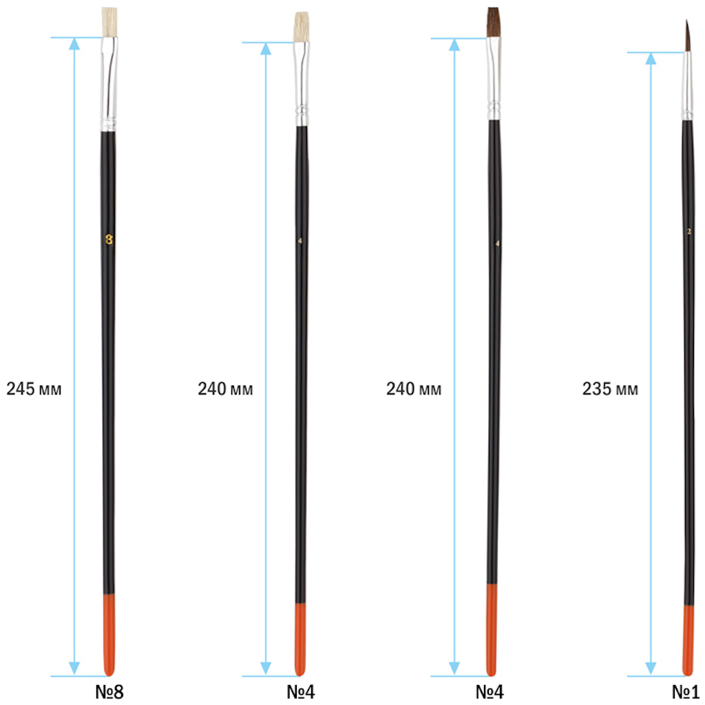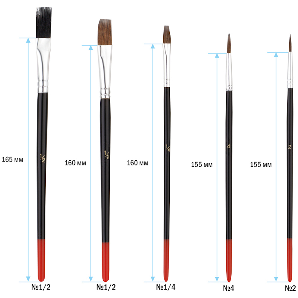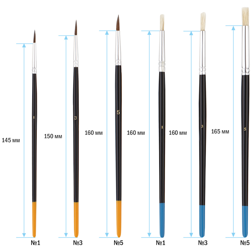 Художественные кисти ArtSpace изготовлены из волоса пони, щетины. Они хорошо впитывают, удерживают и отдают краску. Изделия подойдут для работы с акварелью, гуашью, темперой, водополимерными материалами. Кисти разной формы позволят протестировать вариативные мазки и расширят возможности в процессе создания картины.