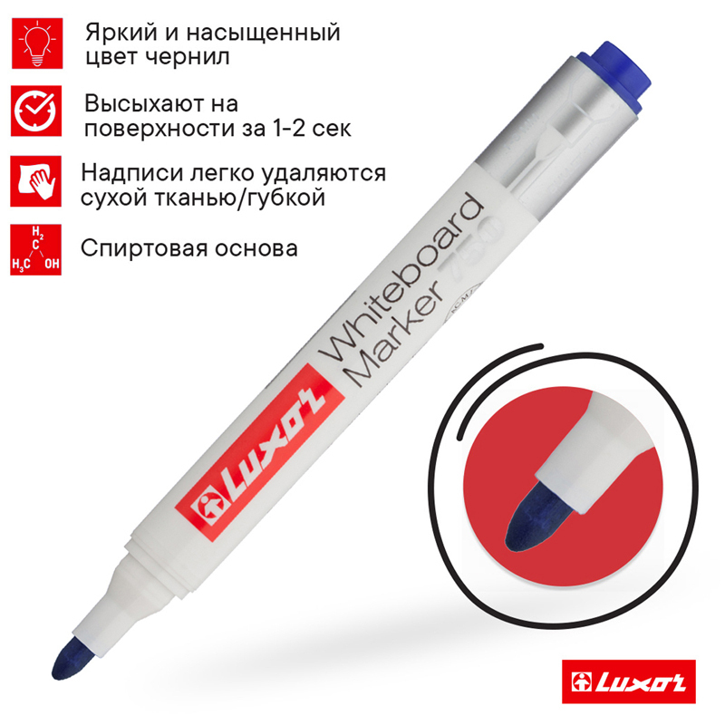 Набор маркеров Luxor 750. Маркер для белой доски предназначен для надписей на досках с магнитно-маркерной и на других непористых поверхностях: стекло, фарфор, пленка.