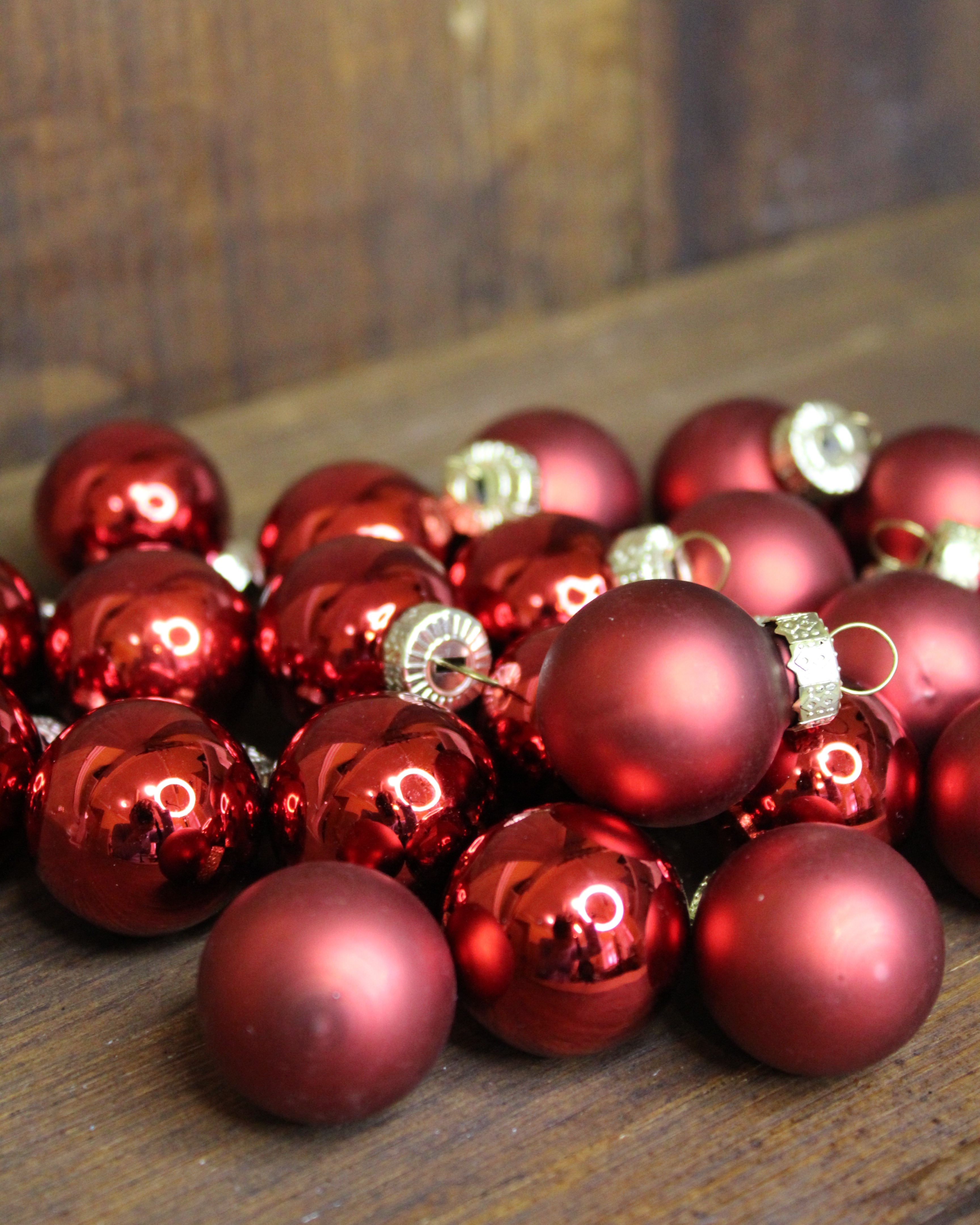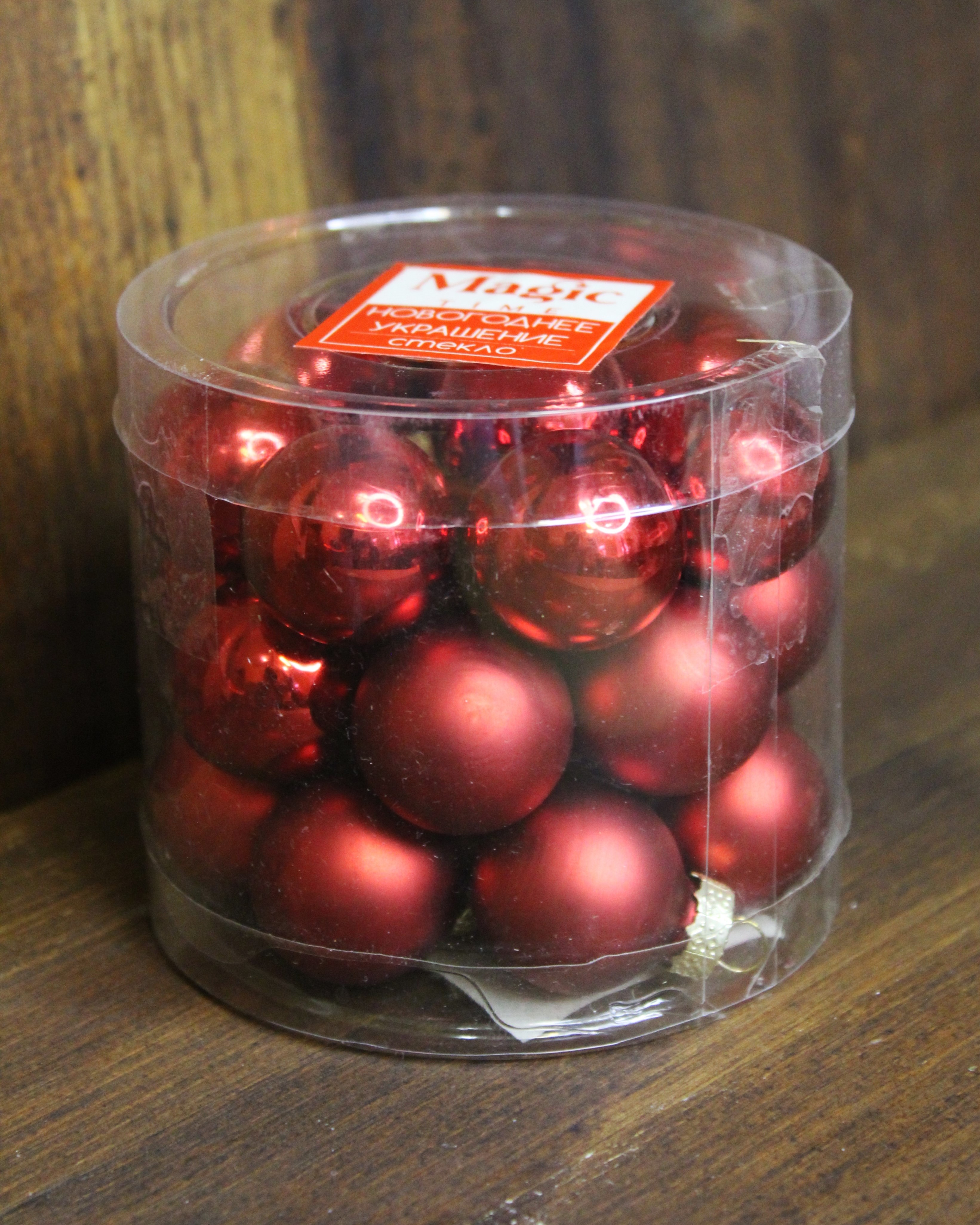 Набор шаров 2,5см 24 шт красный матовый/глянцевый