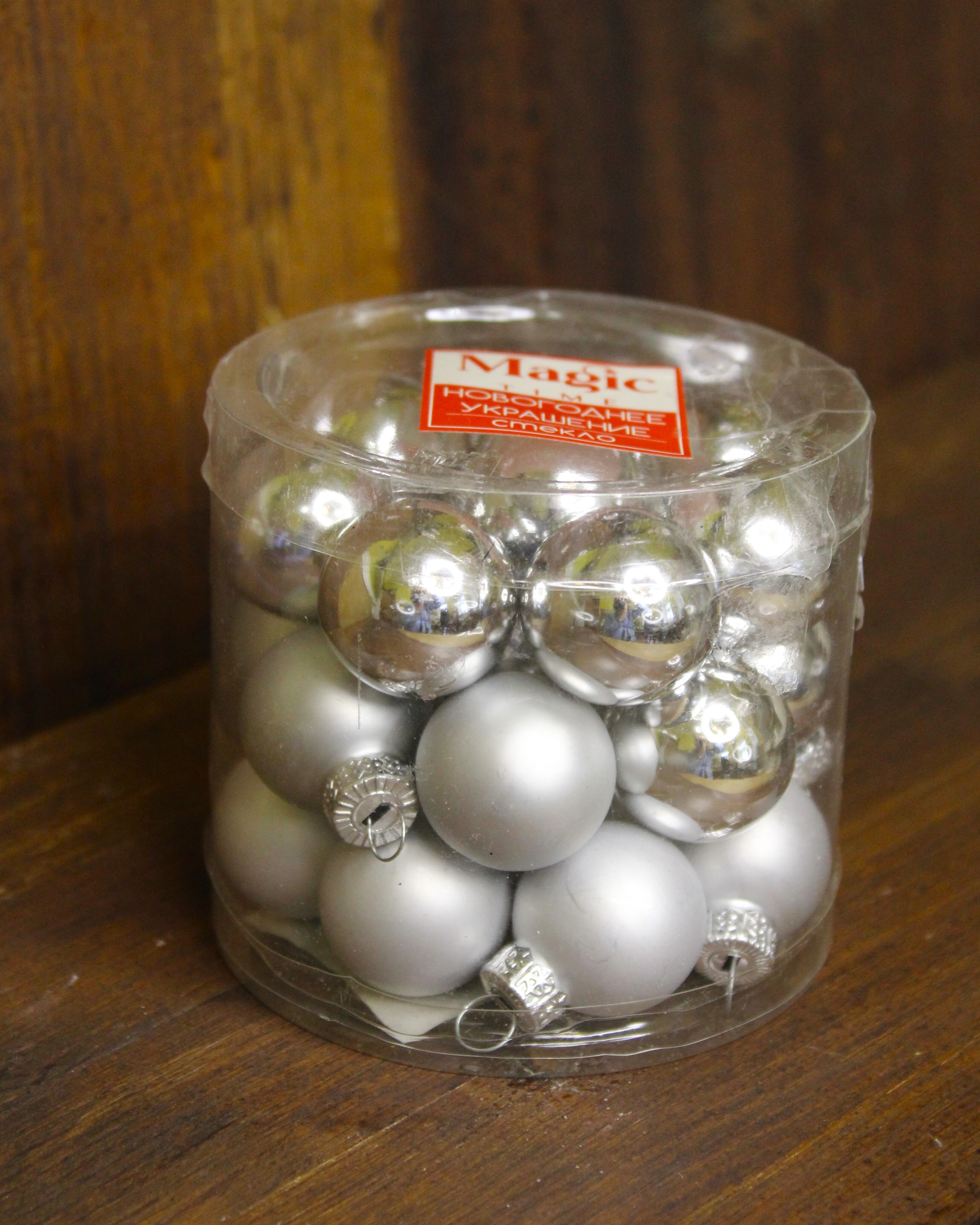 Набор шаров 2,5см 24 шт серебро матовый/глянцевый