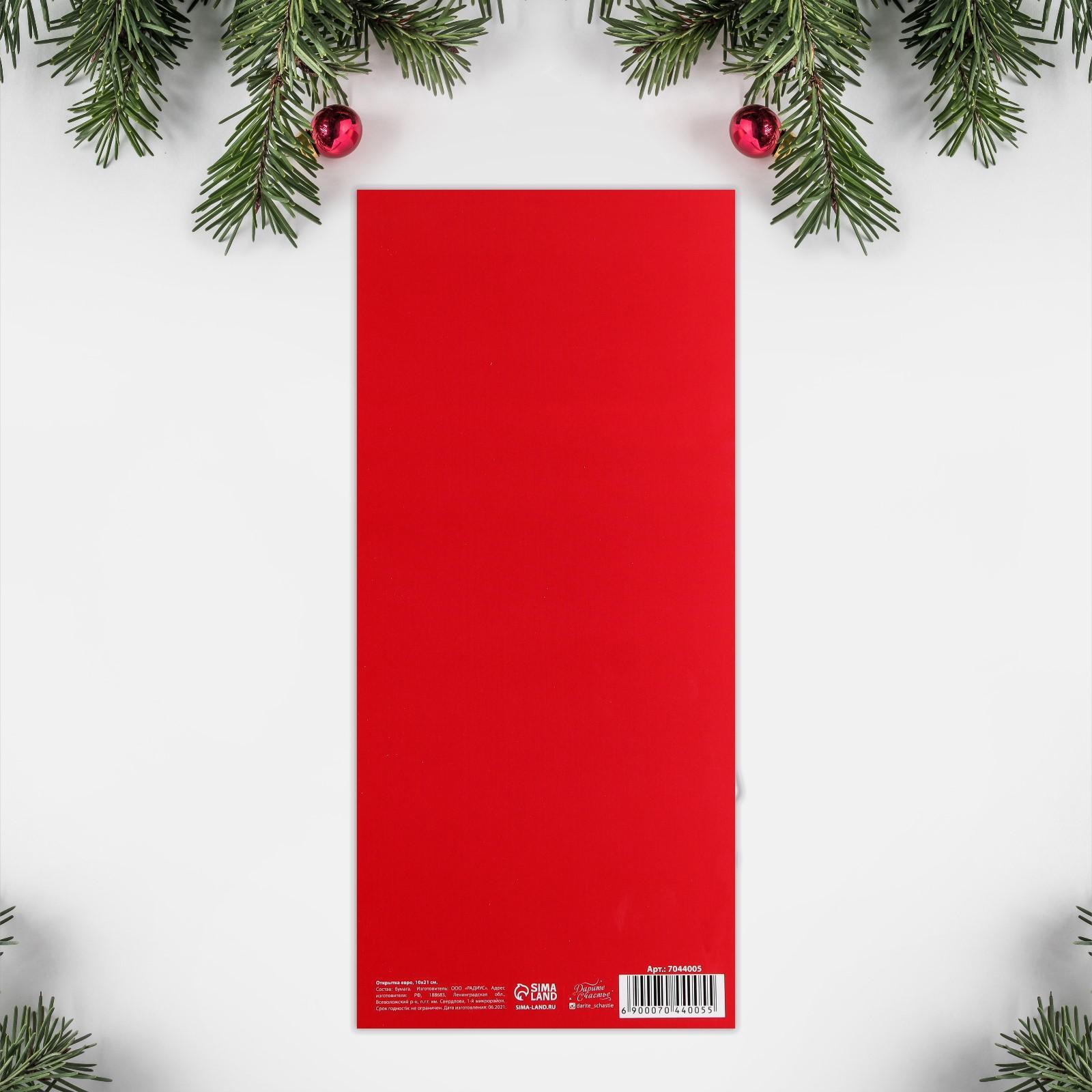 Праздничная открытка – это универсальный и доступный способ выразить свою заботу и внимание к близким вам людям в предстоящий праздник. Размер открытки: 10х21 см. Дизайн выполнен в ярких и праздничных новогодних тонах. Внутри открытки можно оставить пожелание. Милая открытка станет идеальным дополнением к вашему подарку, который непременно вызовет улыбку на лице получателя.