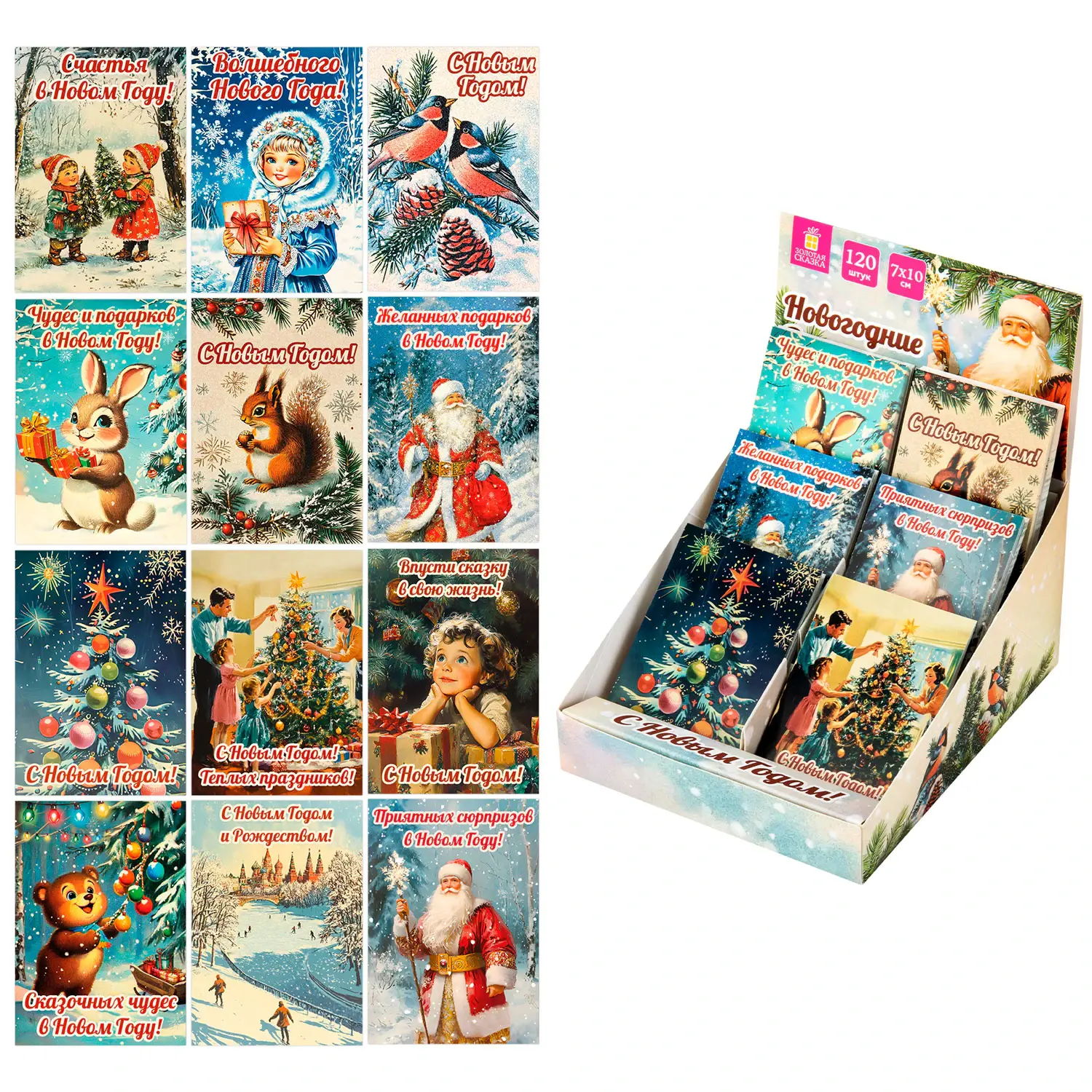 Открытки новогодние ЗОЛОТАЯ СКАЗКА – это прекрасное дополнение к любому подарку и даже полноценный трогательный презент, который окунет вас в атмосферу доброго и по-домашнему уютного праздника. Открытки выполнены из плотного картона размером 7х10 см в 12 уникальных дизайнах, вдохновлёнными детскими воспоминаниями о снежных зимах и ёлочных игрушках. С этими открытками каждый найдёт что-то близкое своему сердцу, они наполнят душу теплом и добрым ожиданием чуда. На обратной стороне каждой открытки вы найдёте достаточно места для личных тёплых слов, пожеланий и поздравлений – так ваше послание станет по-настоящему уникальным и близким сердцу.