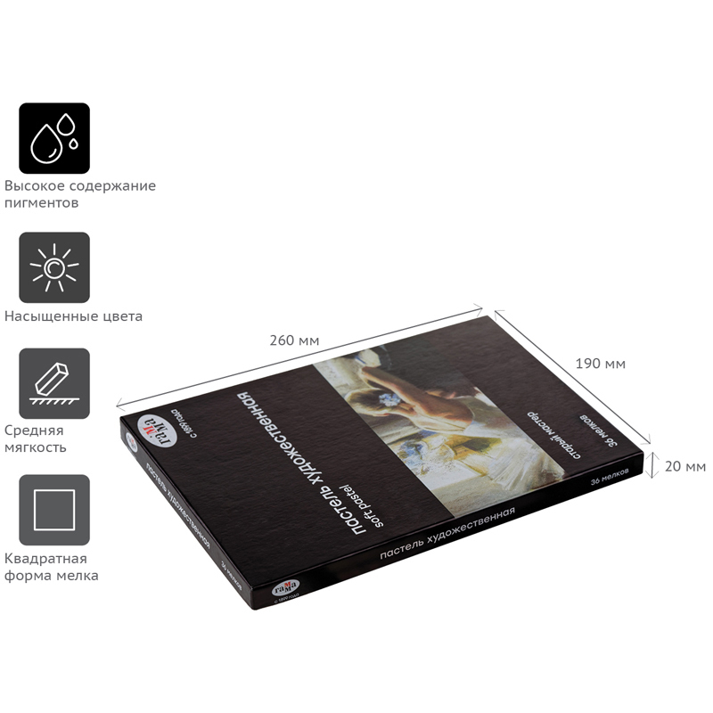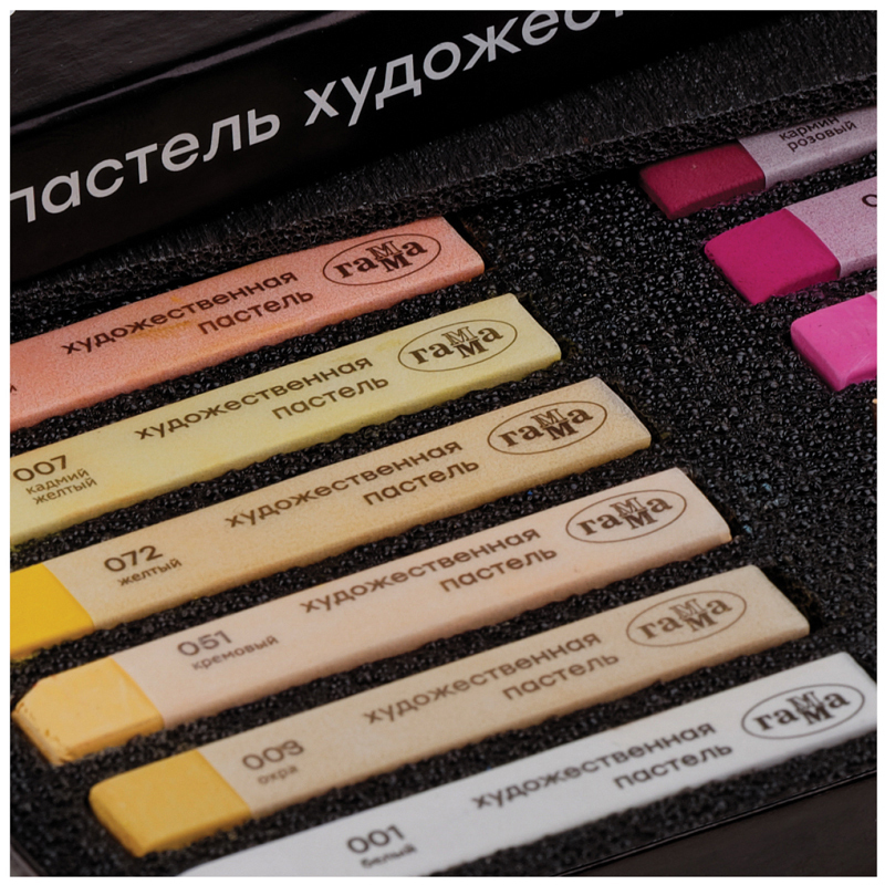 Пастель сухая художественная Гамма "Старый мастер", 36 цветов, в картонной упаковке. Набор сухой художественной пастели средней мягкости. В наборе мелки квадратной формы в индивидуальной бумажной гильзе с указанием цвета. Пастель легко наносится, смешивается и растушевывается. Цвета в наборе насыщенные, светостойкие.