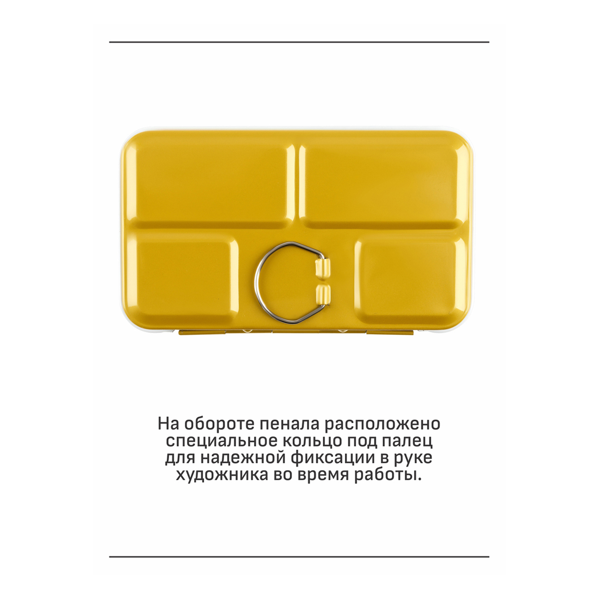 Металлический пенал Гамма для акварельных красок предназначен для хранения и переноски кювет с акварельной краской. Идеально подходит для пленэров и путешествий. Пенал изготовлен из металла и покрыт специальным антикоррозийным покрытием. Подходит для создания индивидуальной палитры цветов и хранения кювет с любимыми цветами. На обороте пенала расположено специальное кольцо под палец для надежной фиксации в руке художника во время работы. Пенал оснащен раскладной палитрой для смешивания красок. Внутри пенал белого цвета − для чистого смешения оттенков. В комплекте салфетка из микрофибры для очистки палитры или промокания кисти. Также салфеткой можно убрать излишки воды с бумаги. Пенал на 12 кювет идеально подойдет для художников, использующих небольшую палитру красок. Кюветы в комплект не входят. Размер: 12,5*7,5*2,5 см