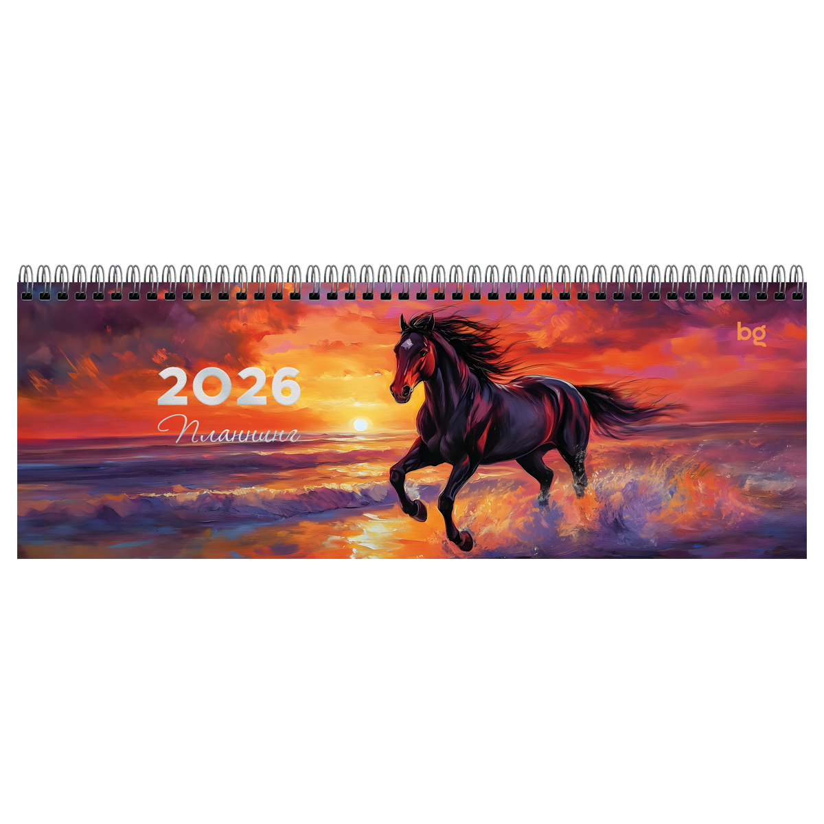 Датированный планинг на 2026 год BG "Символ года" – надёжный и стильный инструмент, который поможет спланировать и организовывать время. Изделие состоит из 64 листов офсетной бумаги плотностью 65 г/м2 и имеет размер 285*100 мм. Печать блока в 1 краску.