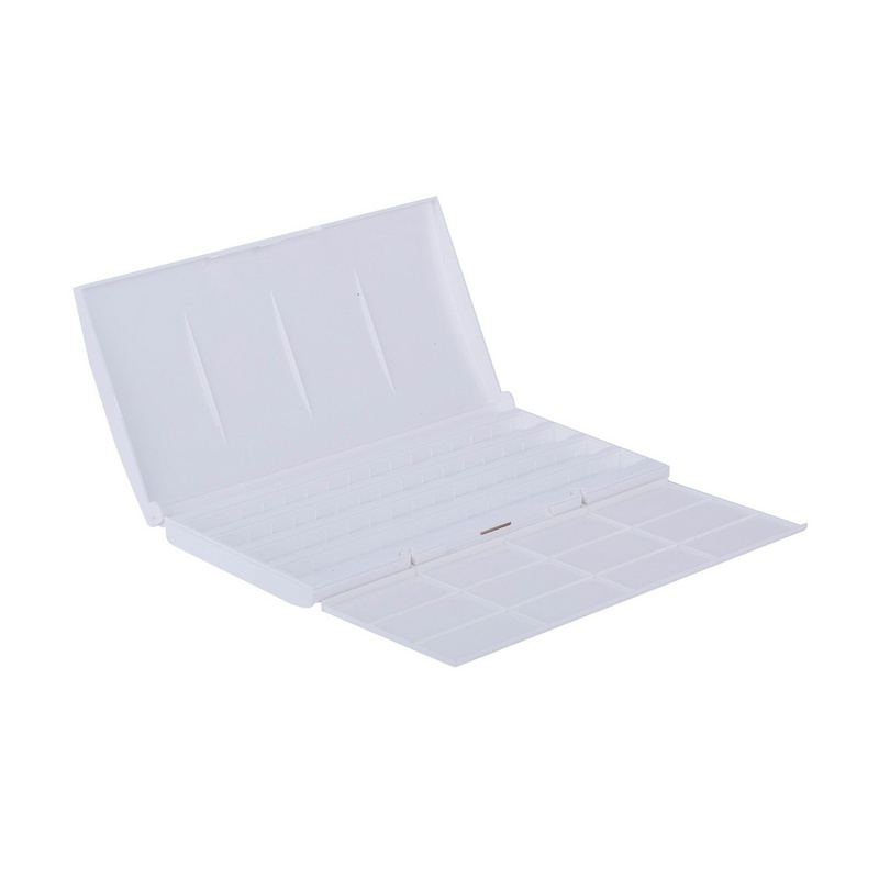 Пенал-футляр для художников, коробка для акварели в кюветах. Пластиковая белая полупрозрачная коробка для хранения 24 и 36 кювет. Размер коробки 22 см х 13 см х 2.5 см. Коробка имеет отделения под краски и кисти, а также крышку, которую удобно использовать в качестве палитры. Легкость и компактность – идеальные параметры для того, чтобы взять коробку на пленэр. Производство Россия, ЗХК "Невская палитра".
