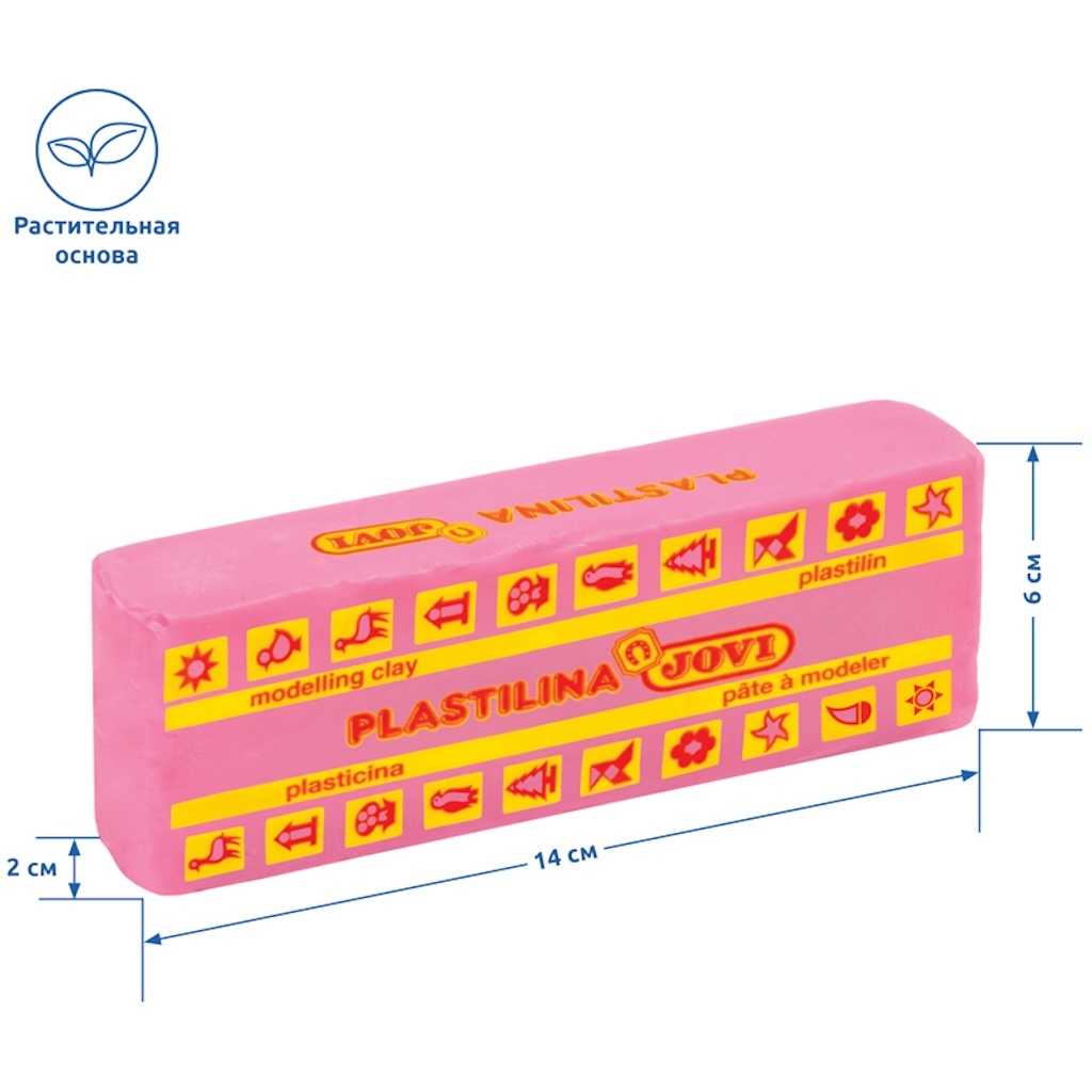 Гипоаллергенный пластилин «Jovi» для изготовления поделок и аппликаций не только поможет развить мелкую моторику рук, но и пробудит творческие способности любого ребенка и даже взрослого. Разработан на растительной основе, не содержит глютен, морозоустойчивый, не прилипает к рукам и снимается с любой поверхности без усилий. Брусок весом 150г розового цвета очень пластичен, не высыхает, держит форму, не крошится, а фигурки не опадают со временем. Пластилин прекрасно смешивается с другими цветами пластилина Jovi. Рекомендован для детей от 3 лет. Используется для техники "Рисование пластилином" и пластилиновой мультипликации.