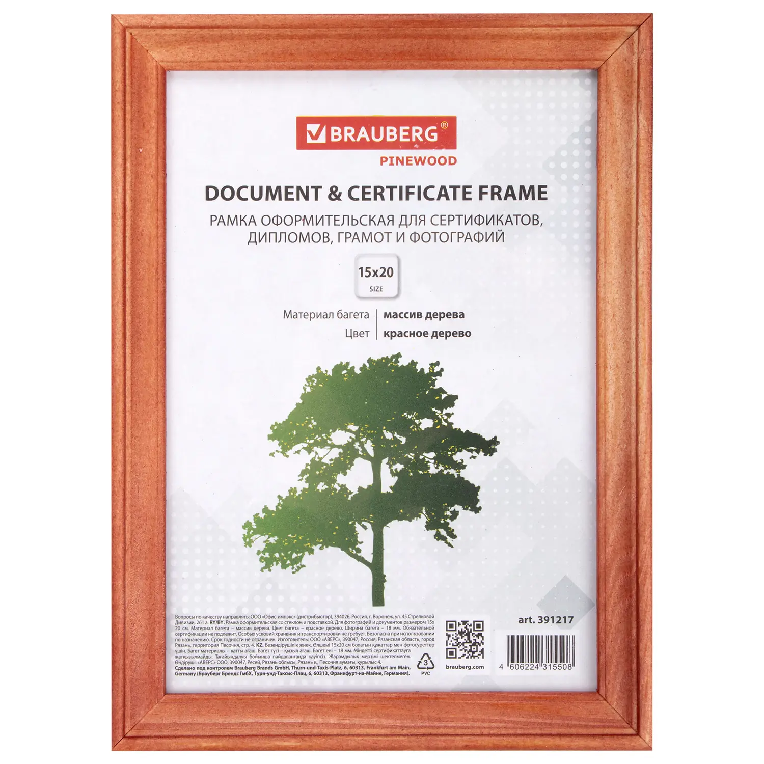 Рамка BRAUBERG "Pinewood" для оформления фотографий, дипломов, сертификатов, лицензий и других документов формата А5 (15х20 см) будет гармонично смотреться в любом интерьере - дома и офисе, учебных учреждениях и магазинах, салонах и предприятиях и др. Рамка выполнена из красного дерева, за счет чего отлично впишется как в домашний, так и в деловой интерьер. Имеется возможность вертикального и горизонтального подвеса. Ширина багета - 18 мм. Аккуратный вид достигается благодаря стеклянной вставке. Микрогофрокартон обеспечивает плотное прилегание и отсутствие в будущем деформации содержимого в рамке.