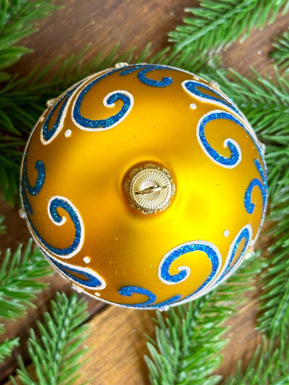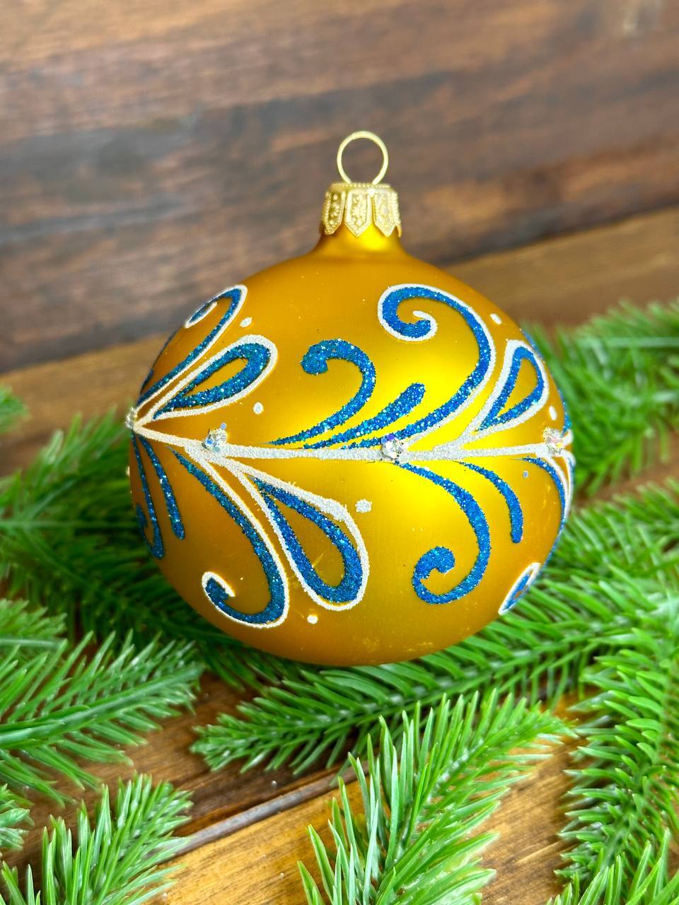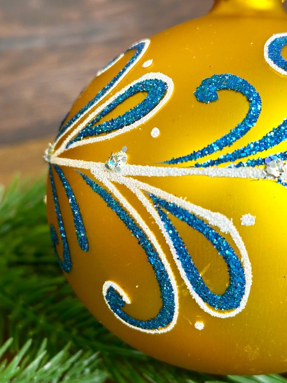 Новогодний подвесной шар - вечная классика, которая поможет расставить эффектные акценты в наряде вашей ели. Подвесной шар выполнен из стекла и декорирован ручной росписью с переливающимися блестками в лучших традициях праздника. Такие шары будут отлично смотреться как на зеленой, так и на белой хвое. Диаметр шара - 7,5 см. Шар для удобства имеет ушко для ниточки или крючка. Послужит приятным подарком или милым дополнением к подарку. Цветопередача может отличаться в зависимости от экрана вашего телефона!