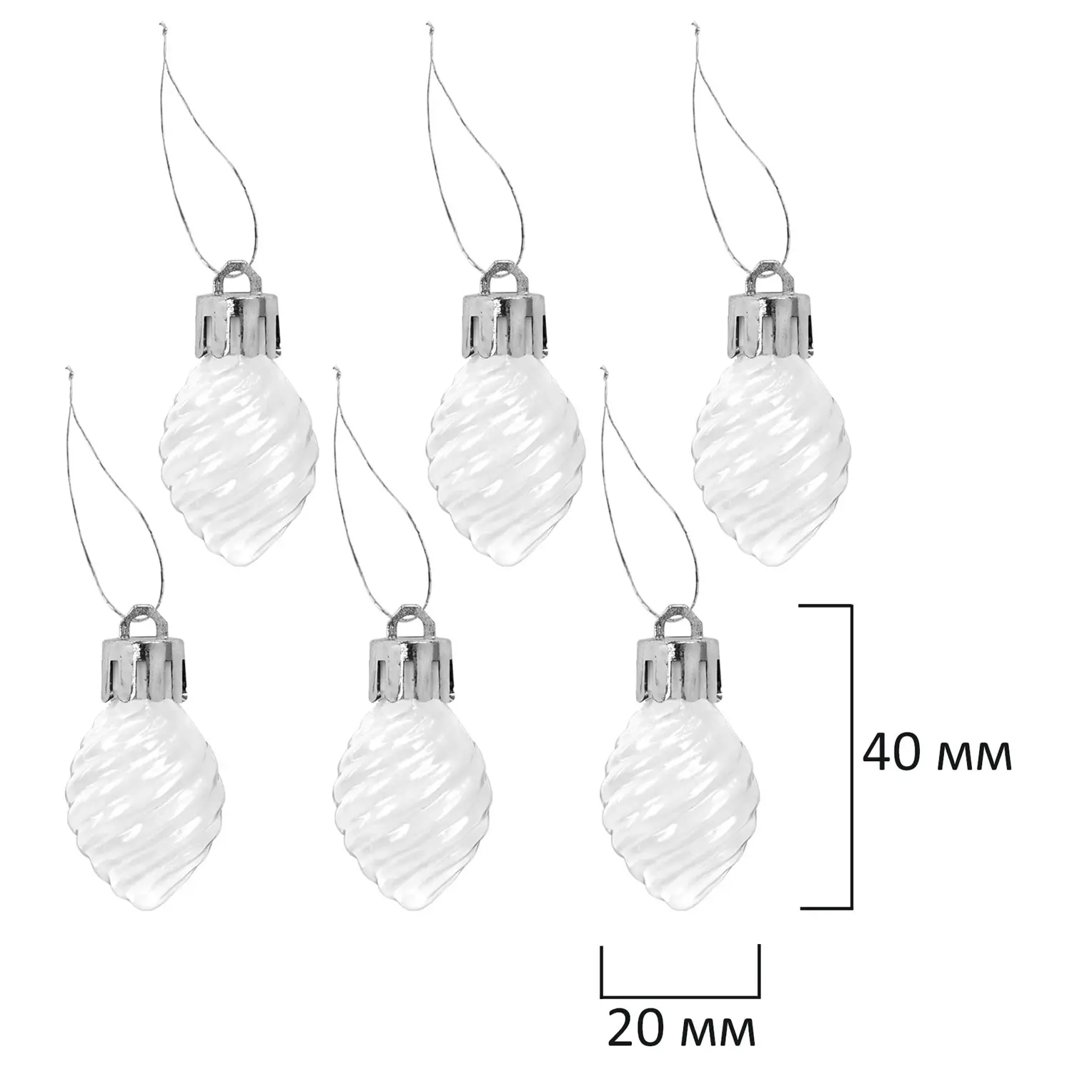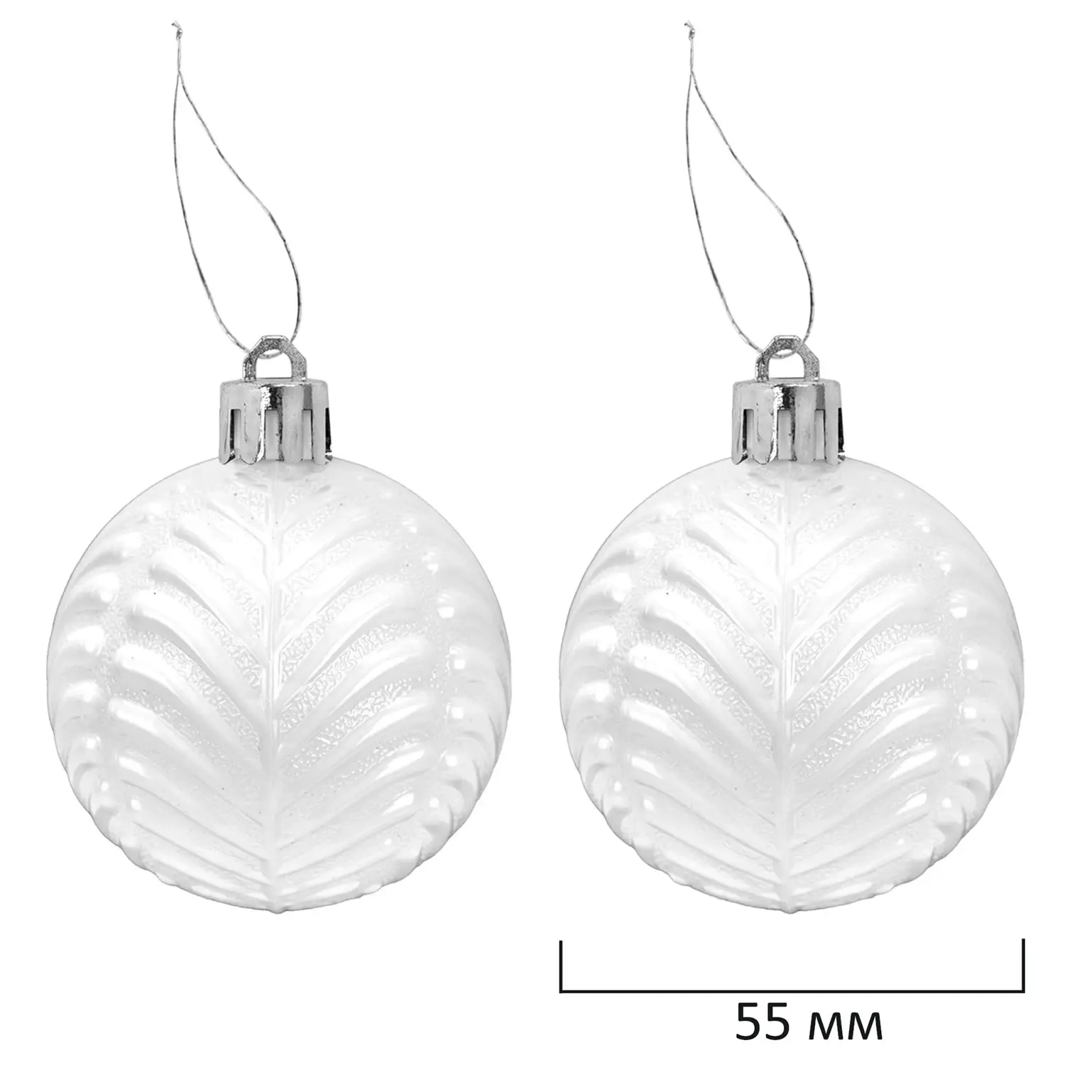 - 2 шара белого цвета с глянцевым эффектом и объемными узорами (диаметром 5,5 см),