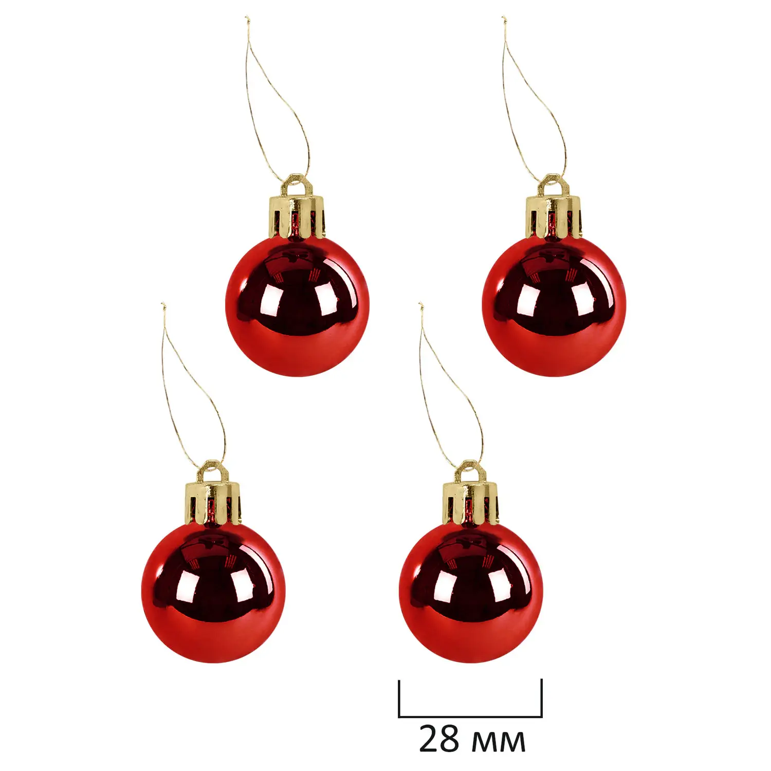 - 4 шара красного цвета с глянцевым эффектом (диаметром 2,8 см),