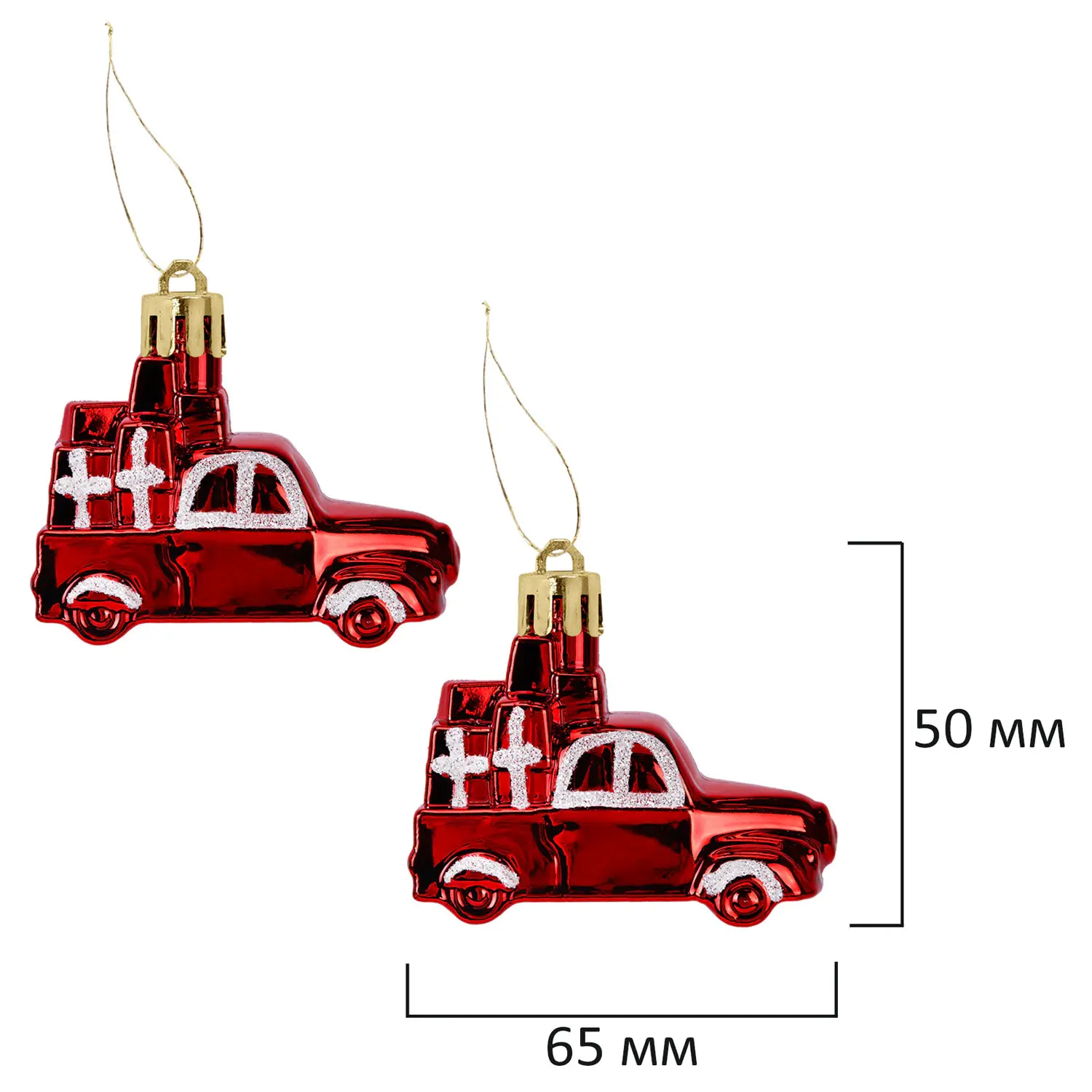- 2 украшения в форме машинки красного цвета с глянцевым эффектом (размером 6,5х3х5 см),