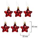 - 6 украшений в форме звезды красного цвета с глянцевым эффектом (3,5х4,5 см)