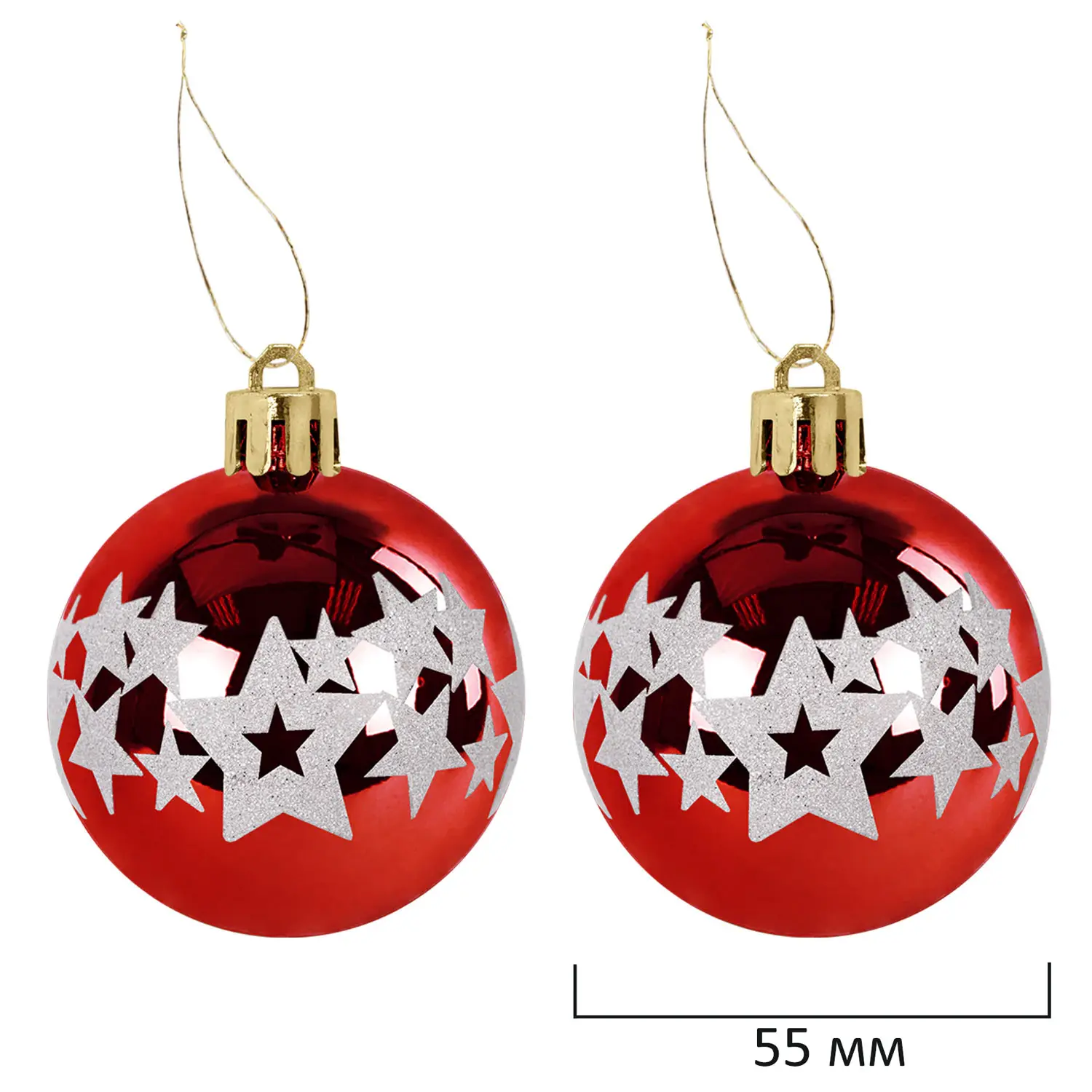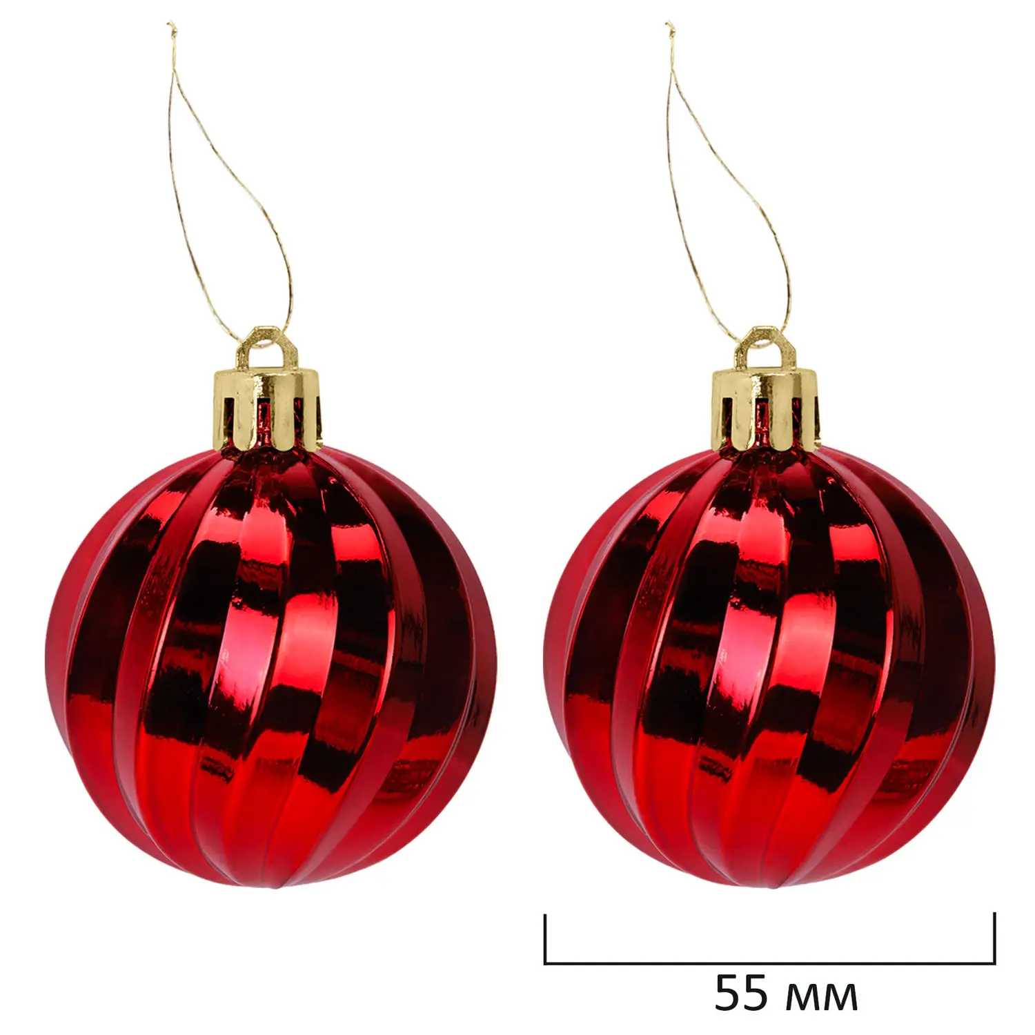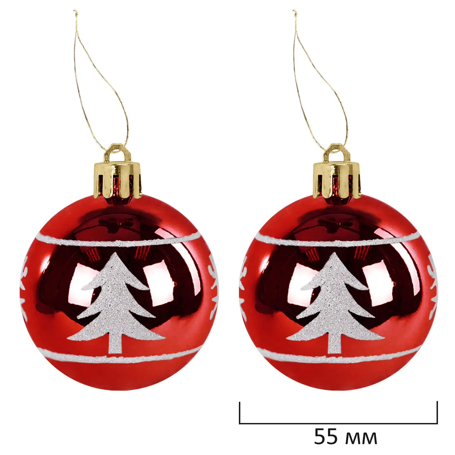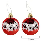 - 2 шара красного цвета с глянцевым эффектом и объемным рисунком (диаметром 5,5 см),